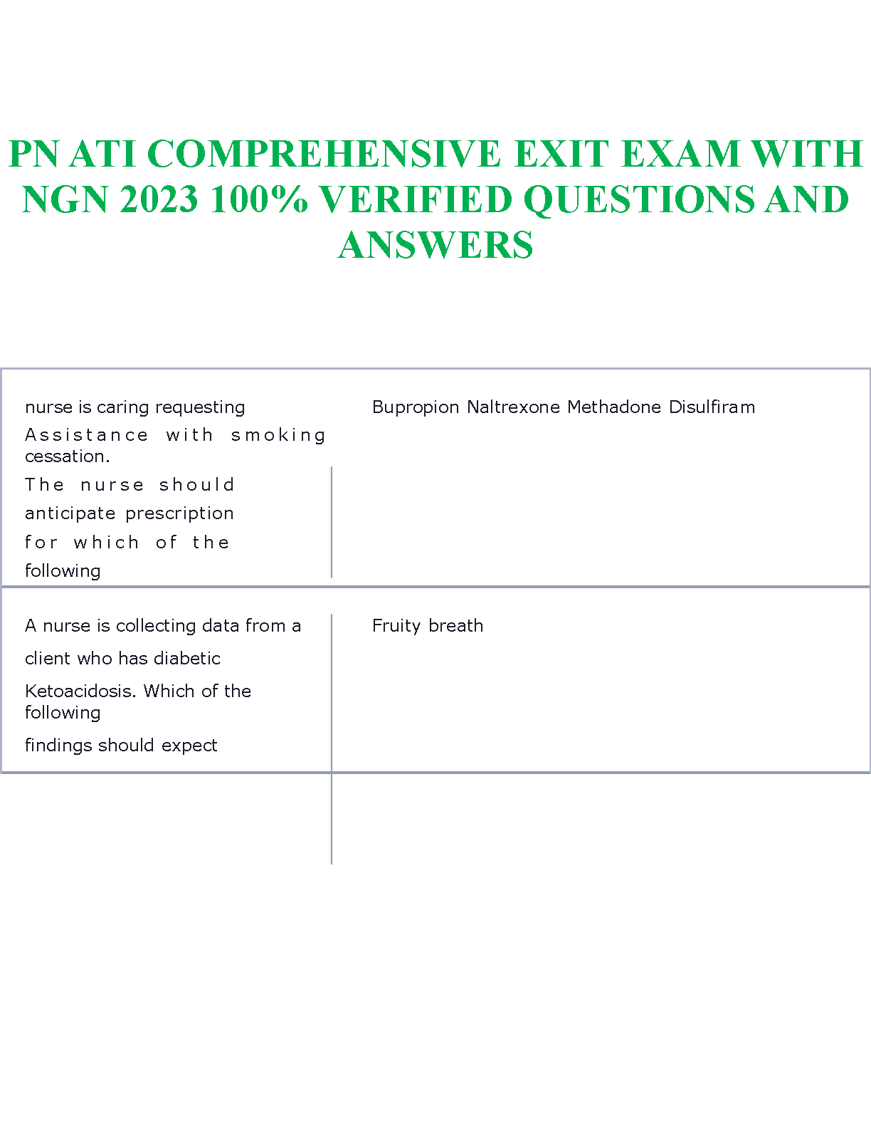 PN ATI Comprehensive Exit Exam 2023: Verified Questions and Answers for Nursing Students