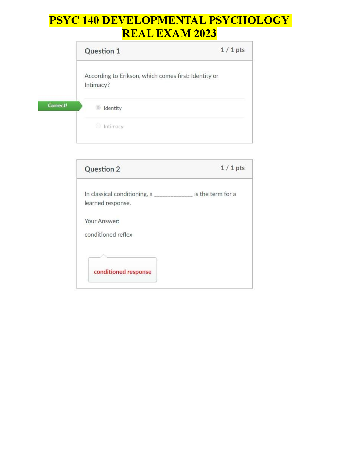 PSYC 140 Developmental Psychology Real Exam 2023: Ace Your Exam with this Practice Quiz