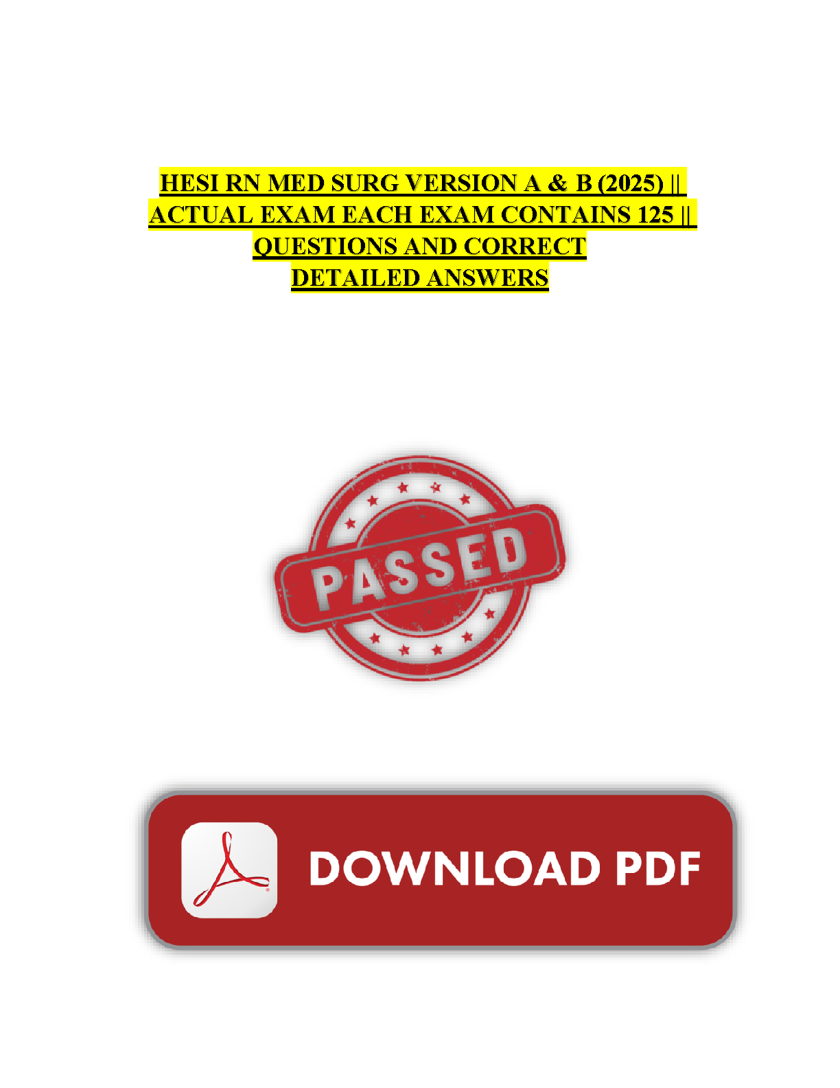 Conquer the HESI RN Med Surg exam with confidence using our comprehensive study guide for versions A and B. This 2025 edition contains 250 actual exam questions with detailed, correct answers to help you avoid resits and pass on your first attempt. Download now and start your path to success!