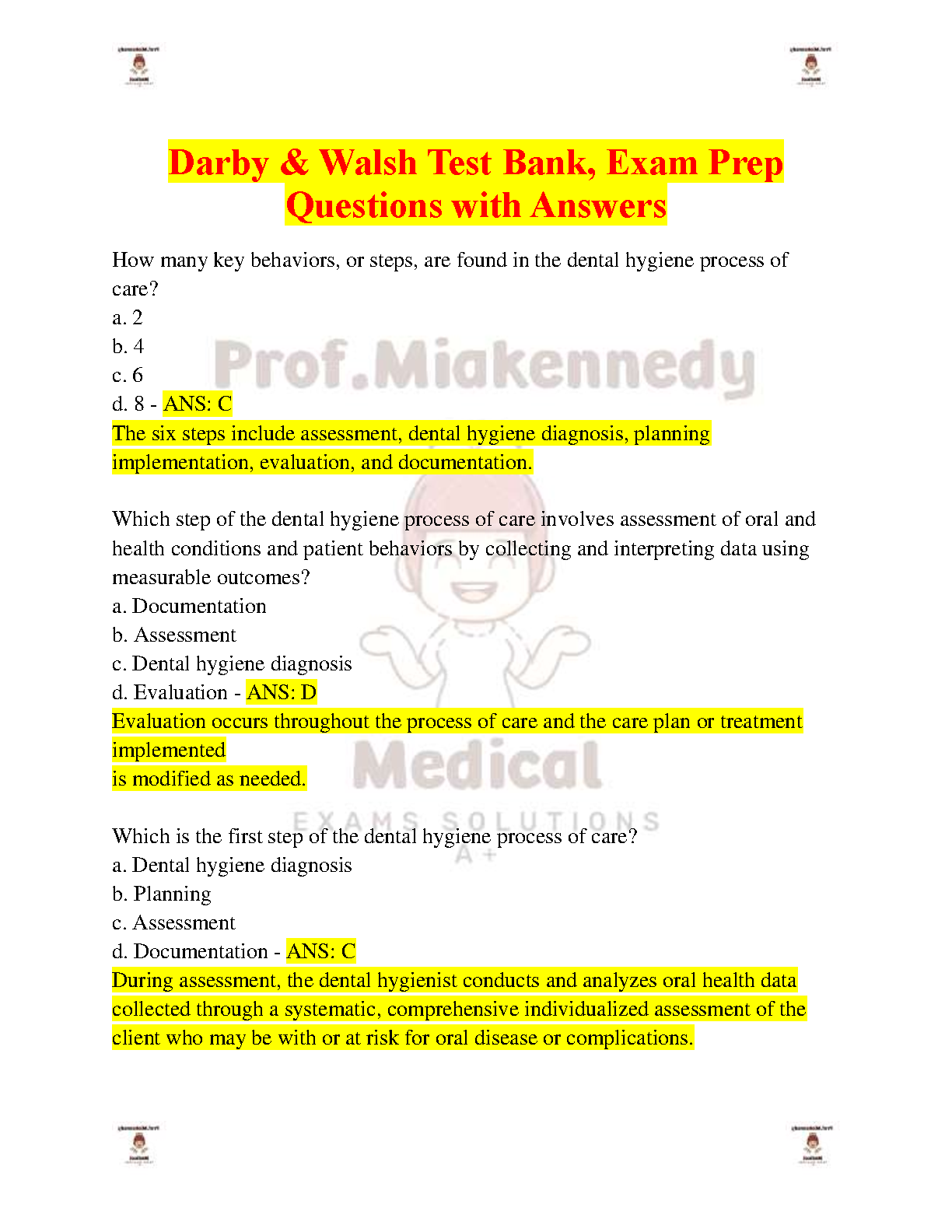 Ace your dental hygiene exams with this comprehensive test bank featuring questions and answers from Darby & Walsh's renowned textbook. This resource is perfect...
