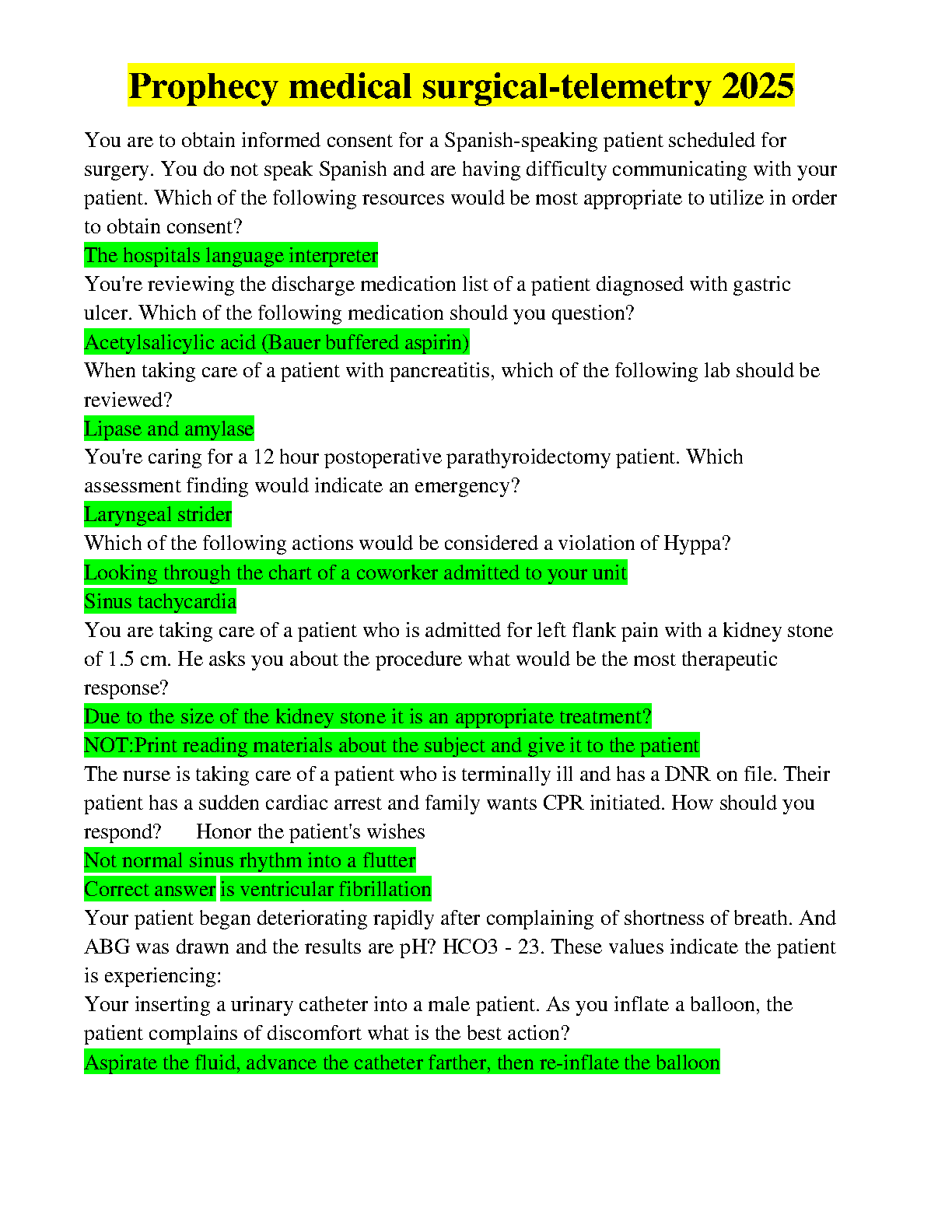 This comprehensive guide provides a wealth of practice questions for the Prophecy Medical Surgical-Telemetry exam. Designed to help students pass their exams on...