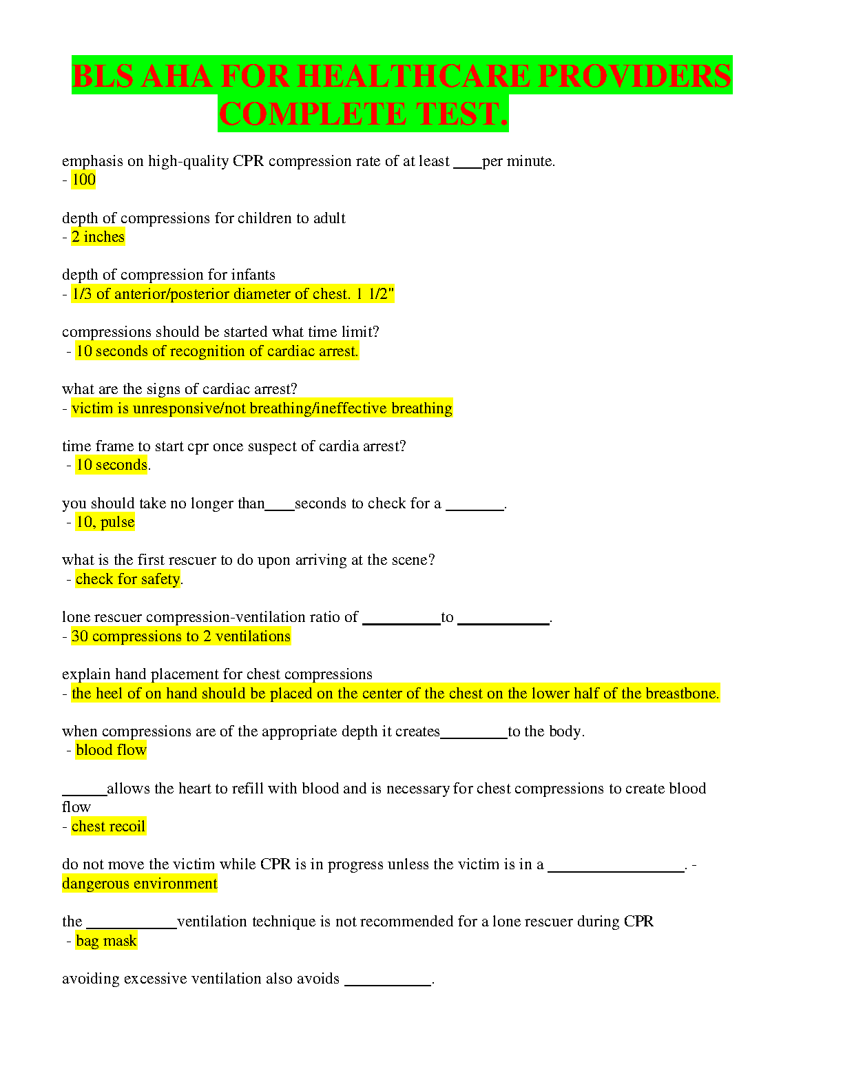 BLS AHA for Healthcare Providers Complete Test: A 2024/2025 Guide to Passing Exams on the First Attempt