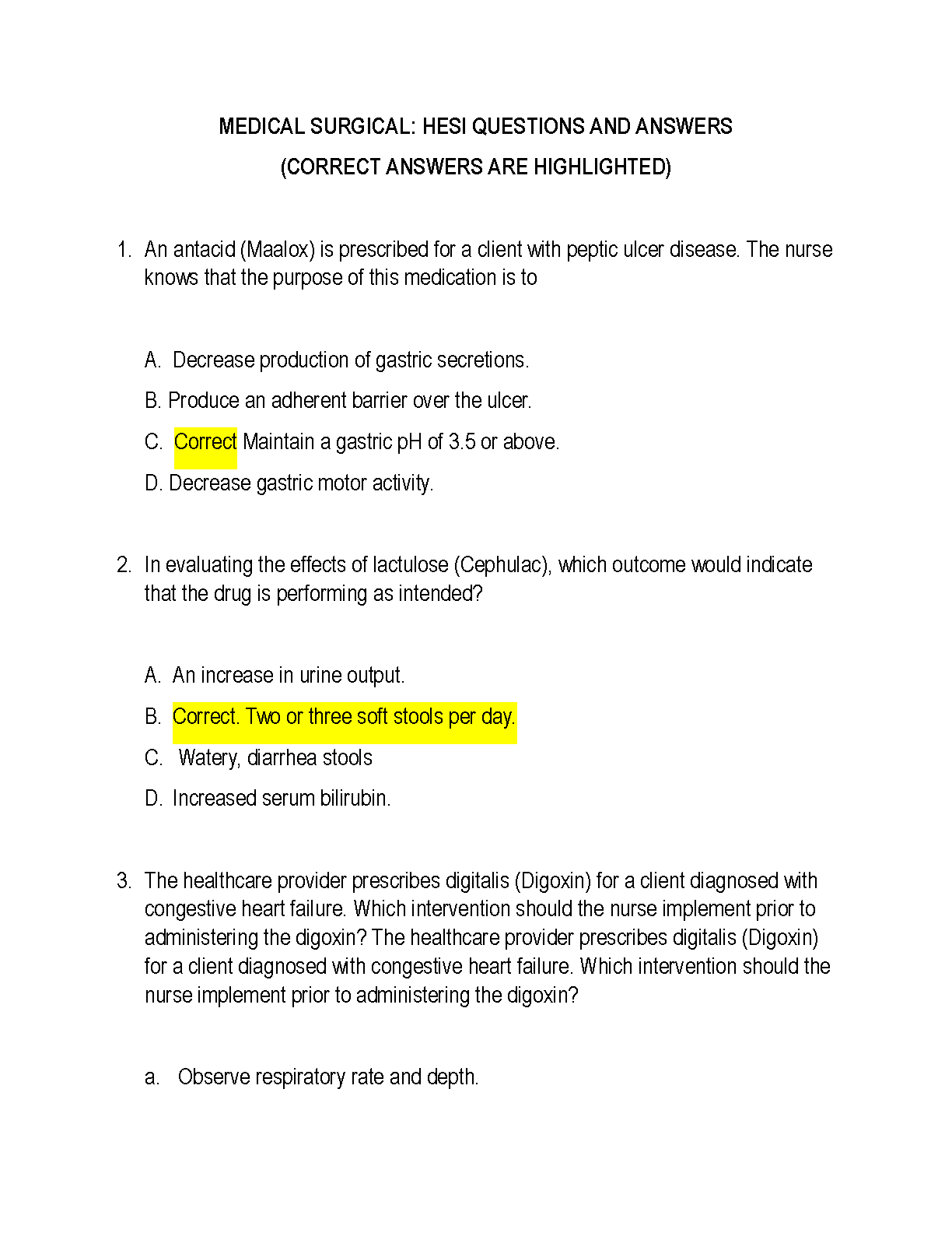 Pass your HESI Medical Surgical exam with flying colors! This comprehensive study guide provides essential questions and answers to help you master key concepts...