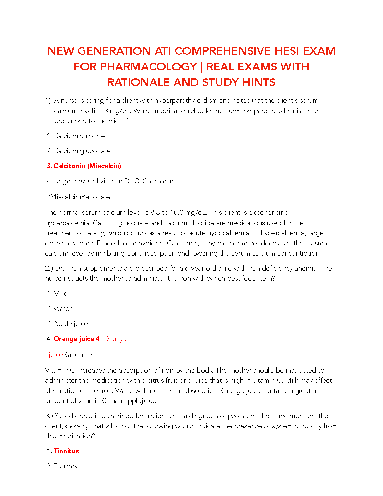 New Generation ATI Comprehensive HESI Exam for Pharmacology 2024/2025: Real Exams with Rationale and Study Hints by ATI