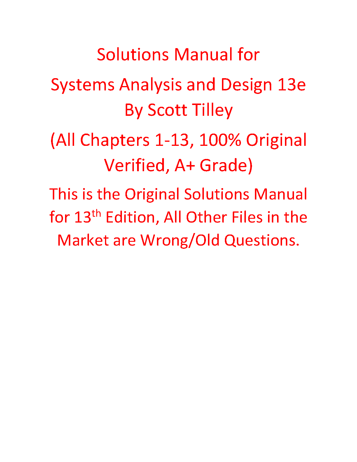Ace your Systems Analysis and Design exam with this 100% original and verified solutions manual for the 13th edition by Scott Tilley. This comprehensive resource covers all chapters (1-13) and guarantees an A+ grade. Unlike outdated or incorrect solutions found elsewhere, this manual provides accurate answers to help you avoid resits and achieve exam success on your first attempt.