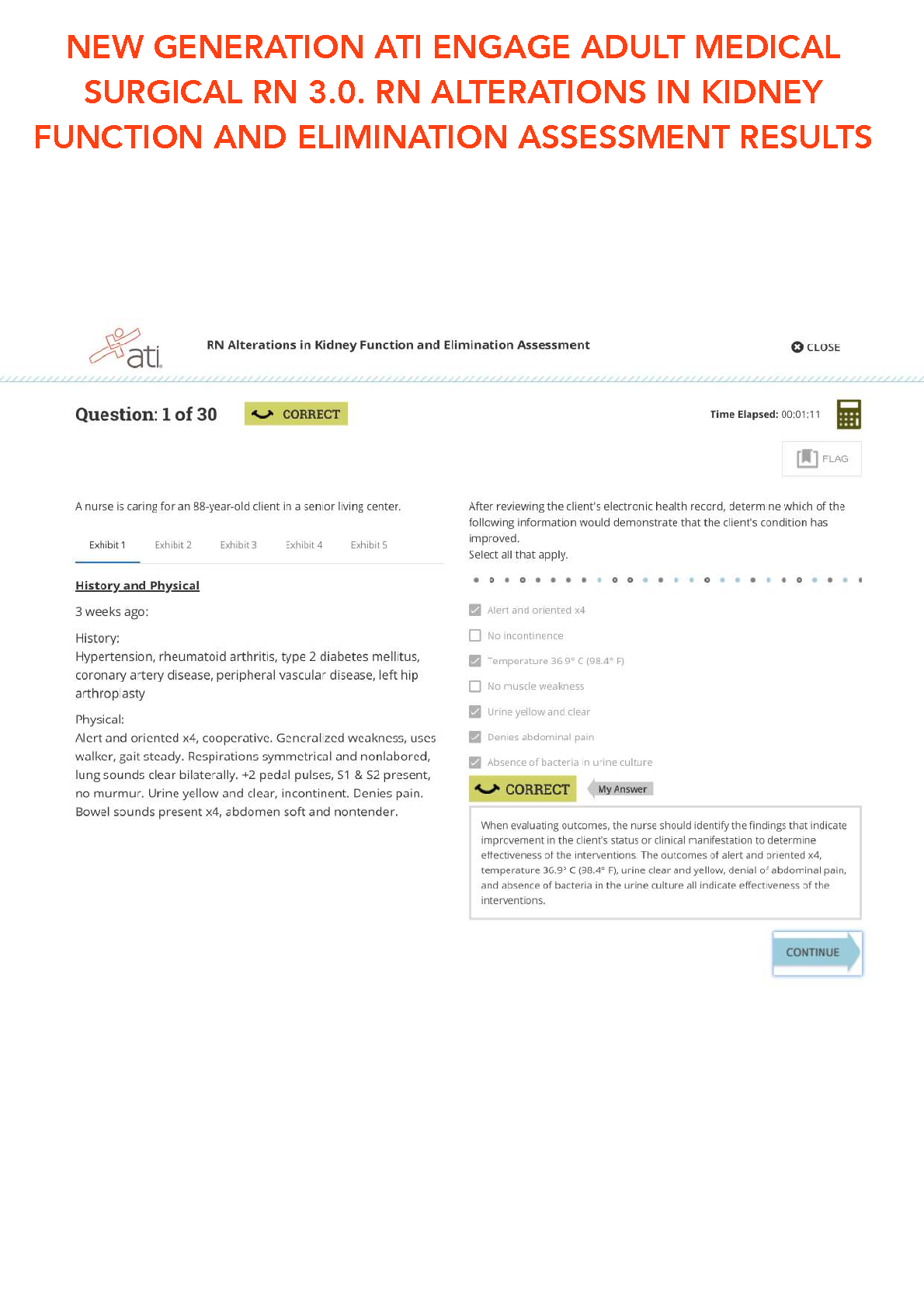 ATI Engage Adult Medical Surgical RN 3.0: RN Alterations in Kidney Function and Elimination Assessment - 2024/2025 Edition