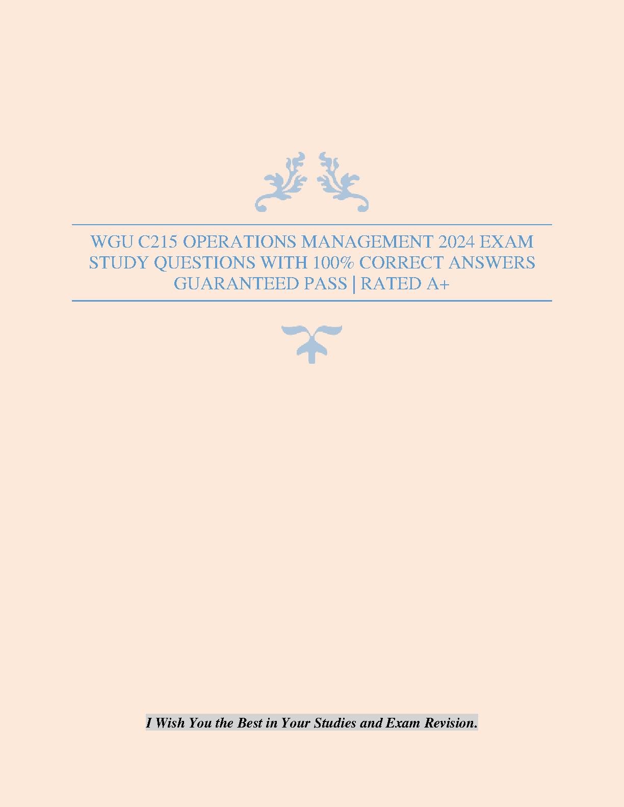 Ace your WGU C215 Operations Management exam with this comprehensive study guide. Featuring 100% correct answers, this resource ensures a guaranteed pass and an...