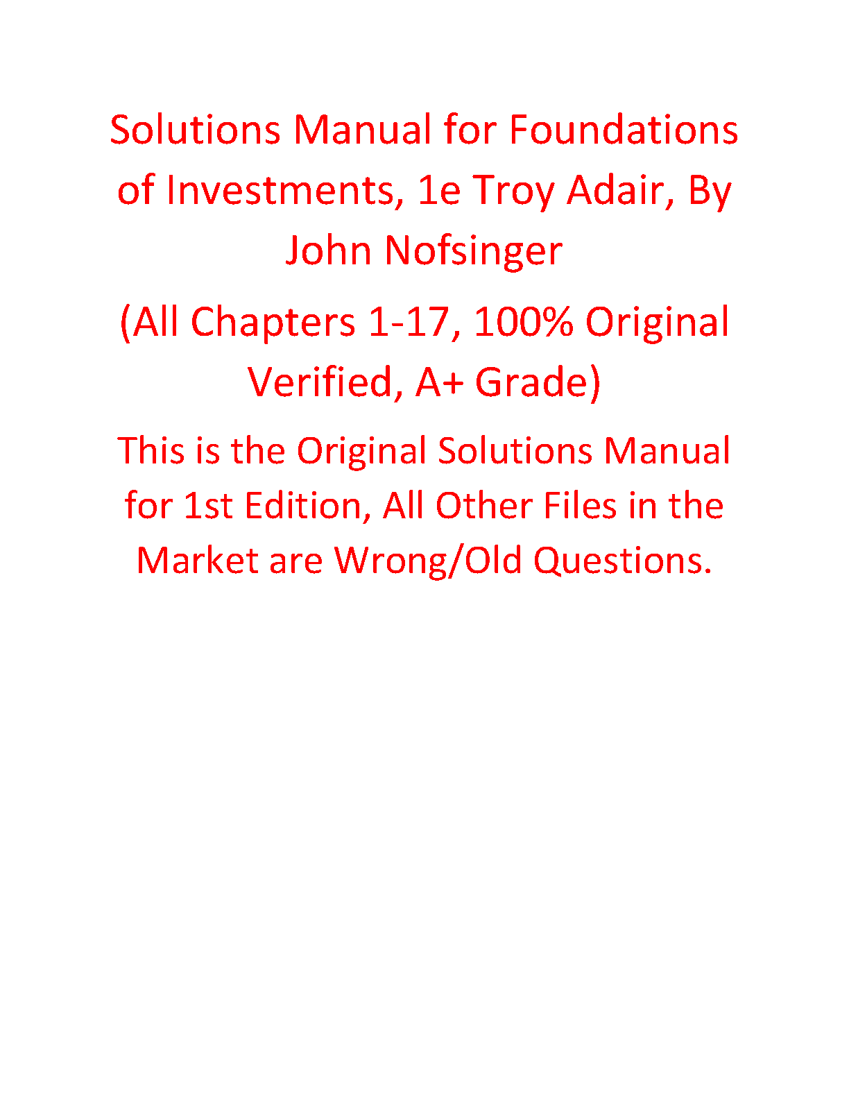 Foundations of Investments, 1st Edition, Solutions Manual by Troy Adair and John Nofsinger: Ace Your Exams!