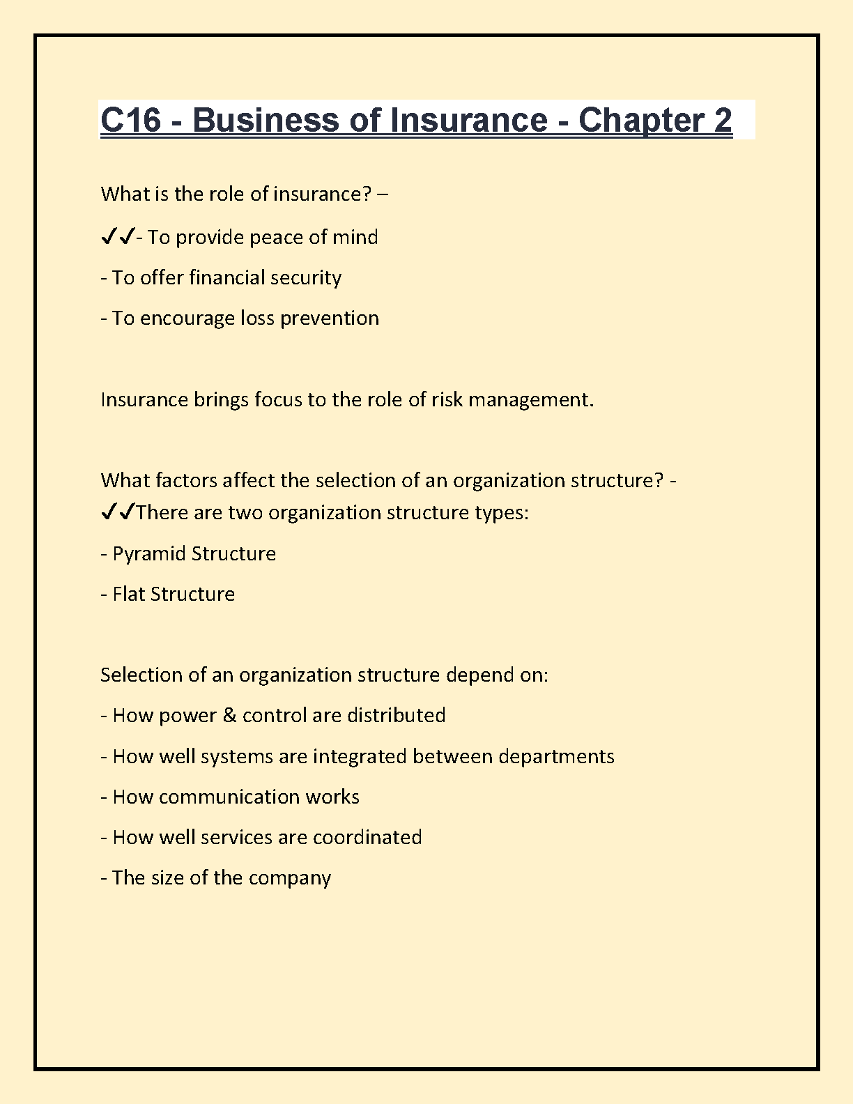 Ace your insurance exams with this concise and comprehensive guide to Chapter 2 of Business of Insurance. This study resource, perfect for the 2024/2025 academi...