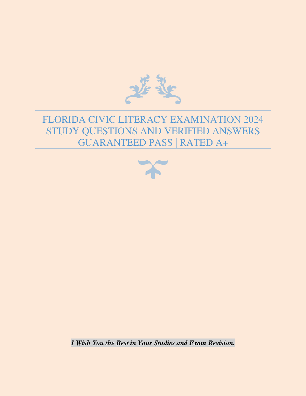 Florida Civic Literacy Examination 2024 Study Guide: Verified Answers & Guaranteed Pass