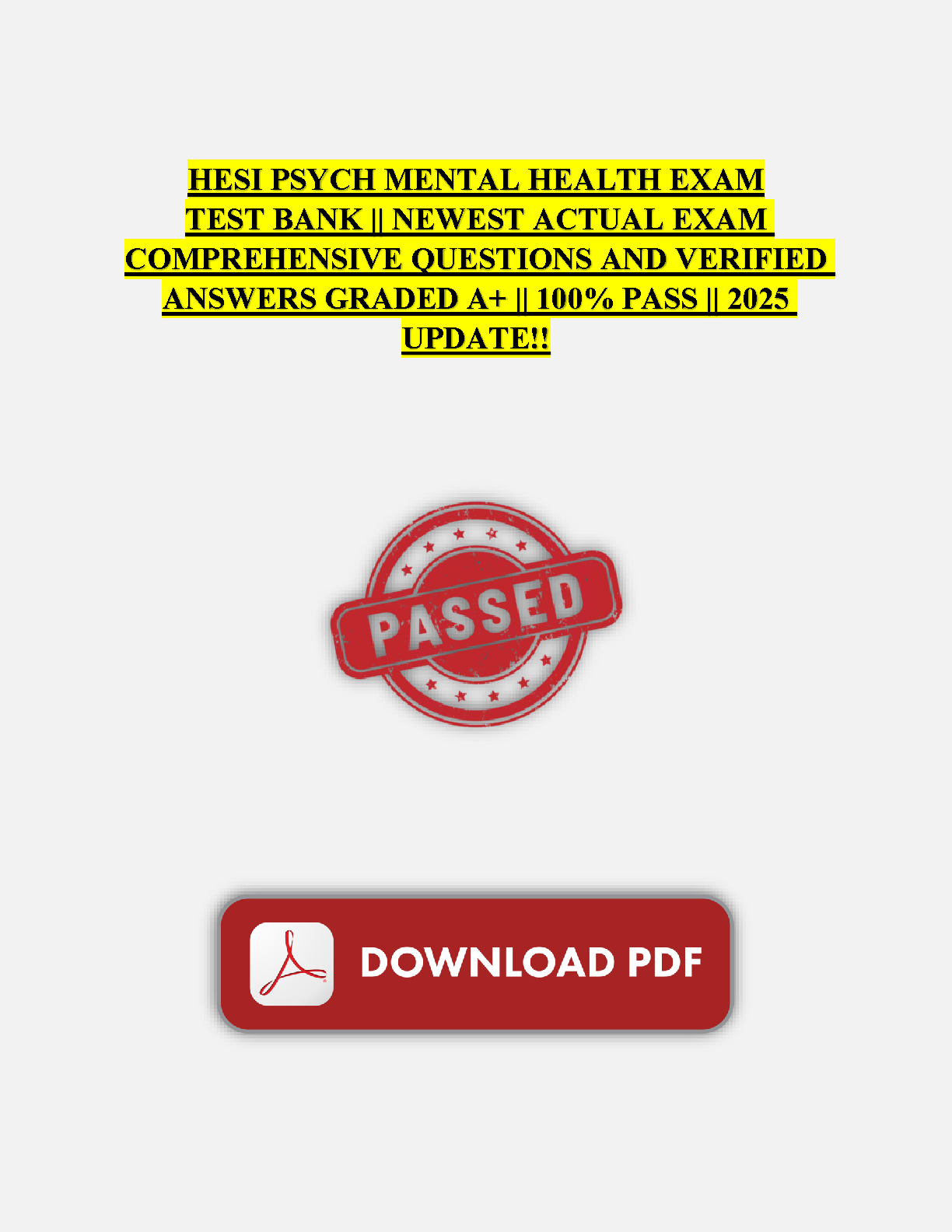 Ace your HESI Psych Mental Health exam with this updated 2025 edition test bank. This resource contains comprehensive, verified questions and answers, graded A+, ensuring a 100% pass rate. Prepare effectively and avoid exam resits with this essential study tool.