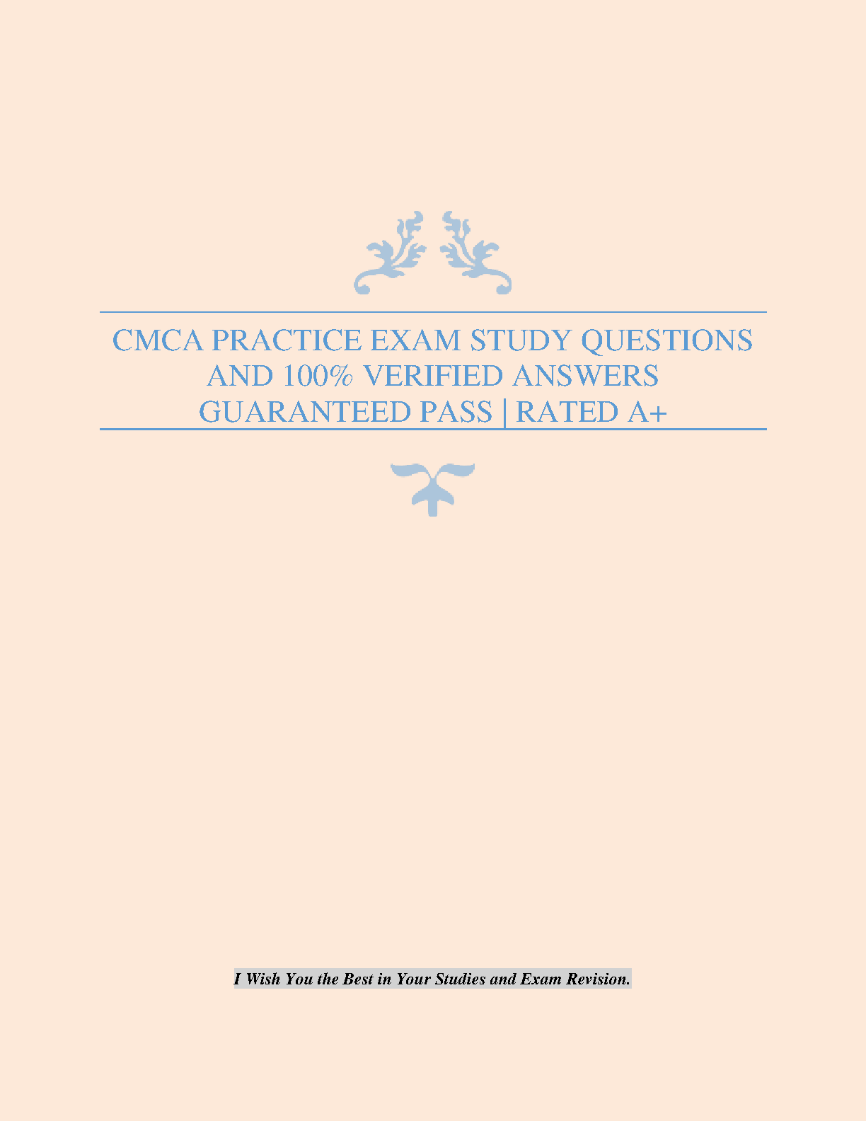 Ace your CMCA exam on the first try with this comprehensive study guide. This 2024/2025 edition contains practice questions and 100% verified answers, designed to ensure you achieve a guaranteed A+ rating. Prepare effectively and avoid resits!