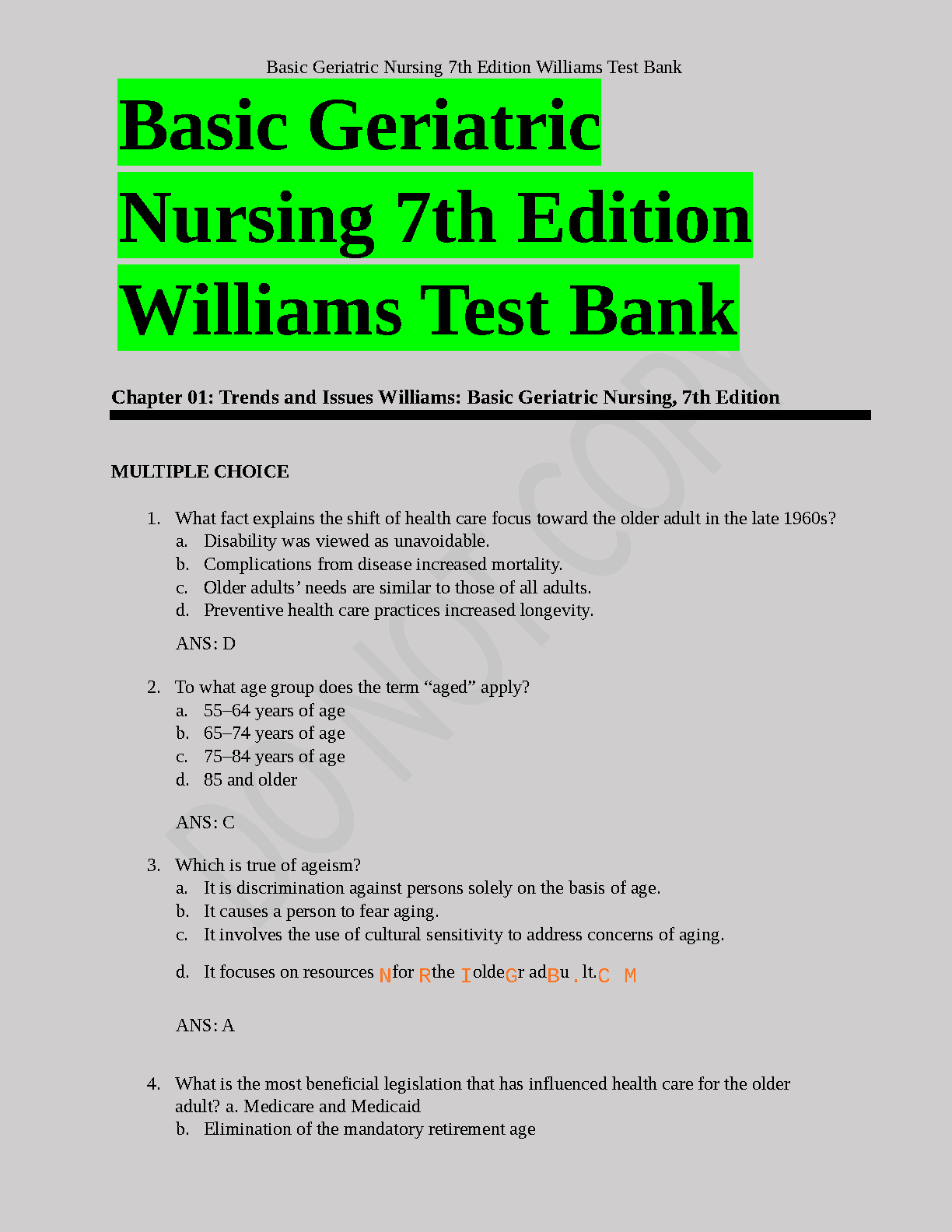 Ace your Basic Geriatric Nursing exams with this comprehensive 7th edition test bank by Shelly J. Williams. This resource provides in-depth practice questions t...