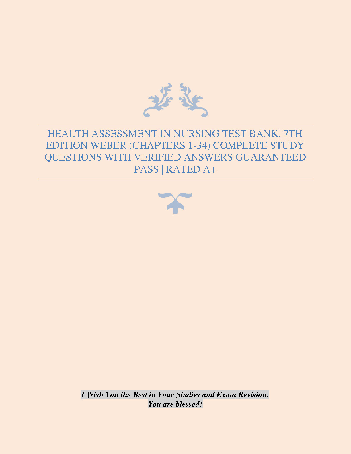 Health Assessment in Nursing Test Bank, 7th Edition by Weber: Complete Study Questions and Verified Answers for Guaranteed Success