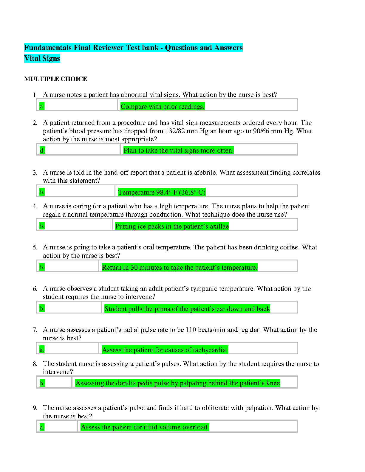 Fundamentals of Nursing Vital Signs Final Reviewer Test Bank: Questions and Answers