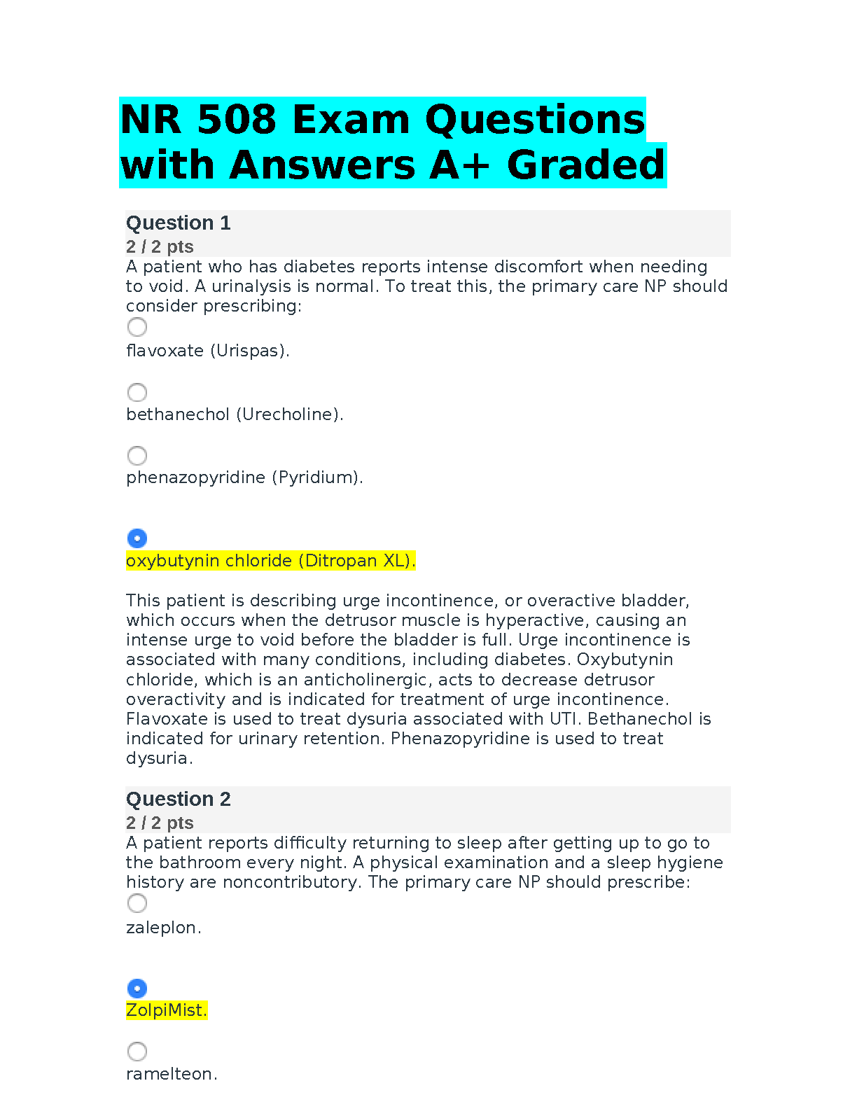 NR 508 Exam Questions and Answers with A+ Grades - 2024/2025 Edition