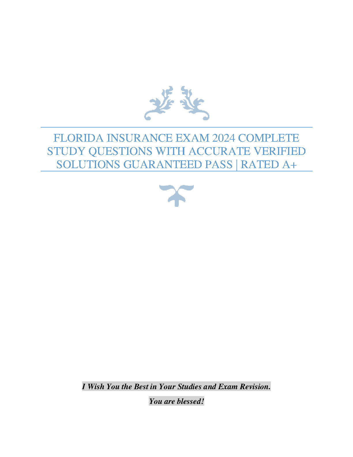 Florida Insurance Exam 2024 Complete Study Guide with Verified Solutions by [Author's Name]