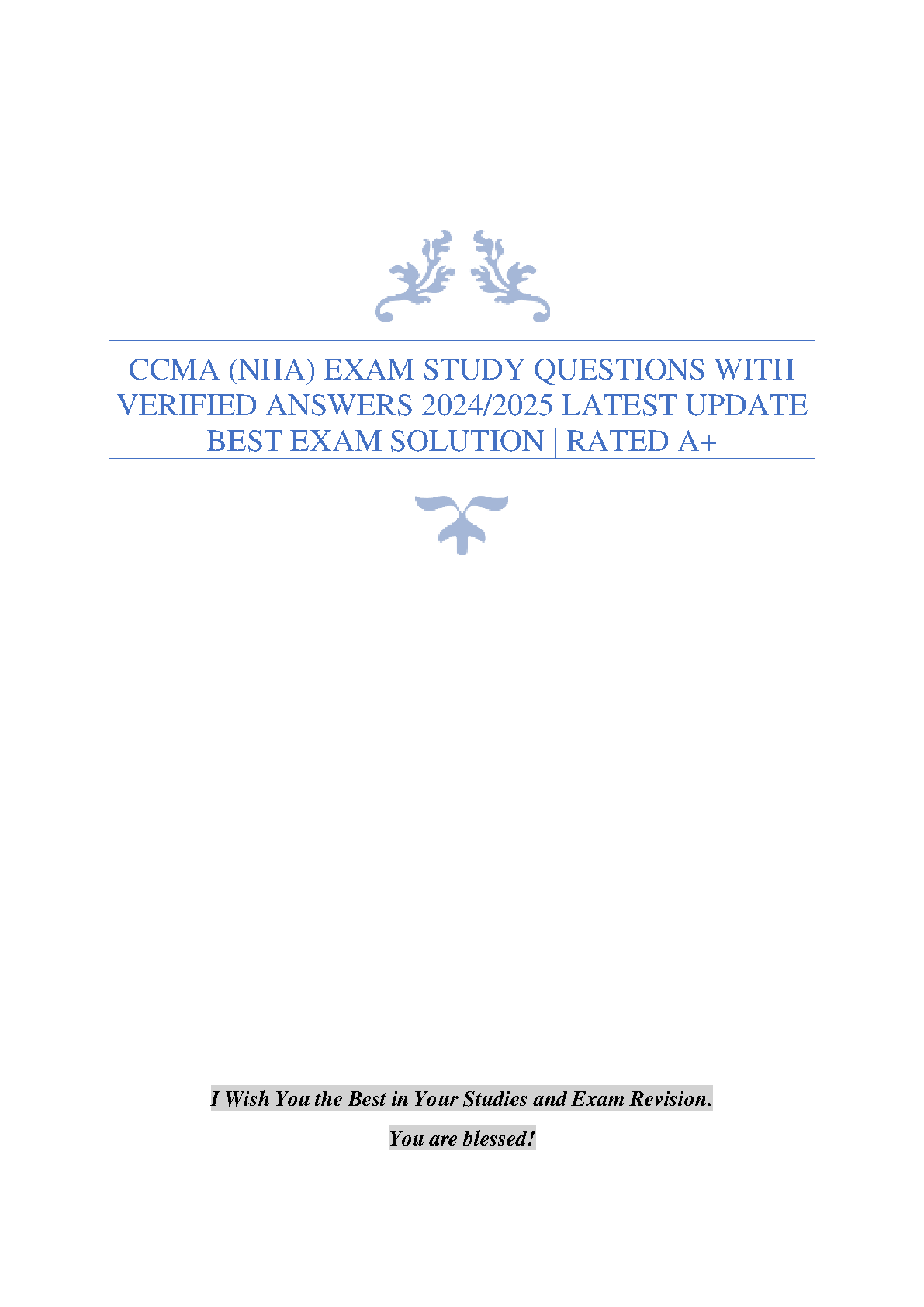CCMA (NHA) Exam Study Questions with Verified Answers 2024/2025: Latest Update - Best Exam Solution