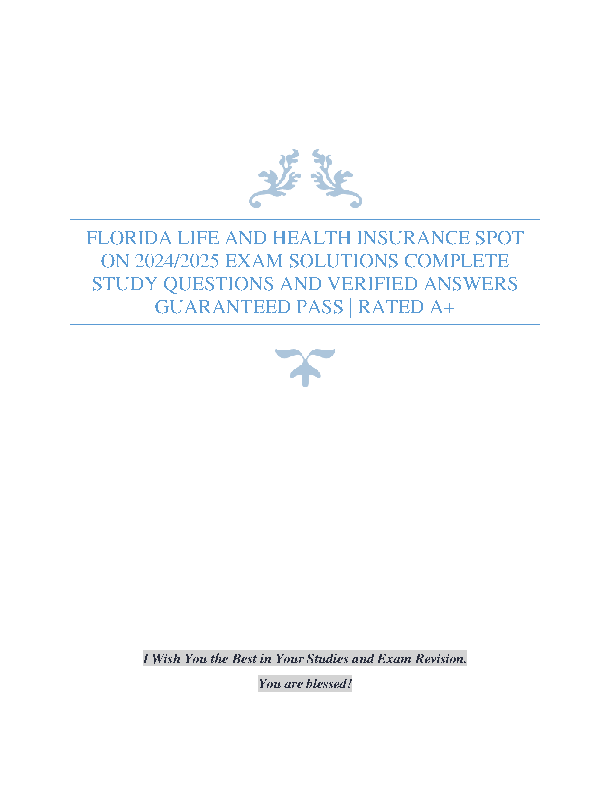 Ace your Florida Life and Health Insurance exam with this comprehensive study guide. Includes complete solutions and verified answers for the 2024/2025 exam, ensuring a guaranteed pass. Rated A+!