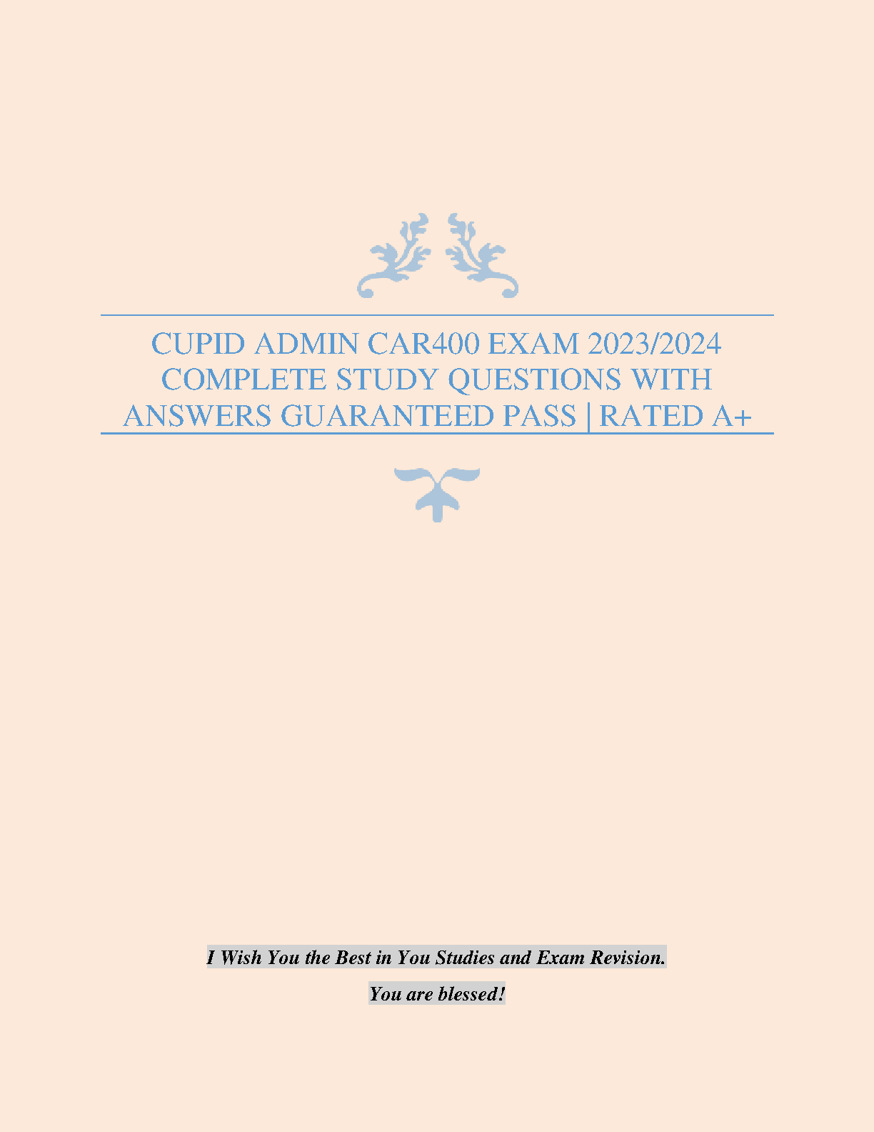 Ace your CUPID ADMIN CAR400 exam with this comprehensive study guide for the 2023/2024 academic year. This resource includes complete study questions and answers, designed to help students pass on their first attempt. Rated A+ for guaranteed success!