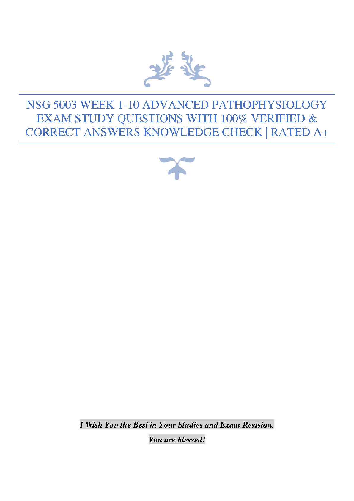 Ace your NSG 5003 Pathophysiology exam with this comprehensive study guide. This resource features 100% verified answers and a knowledge check, helping you achi...