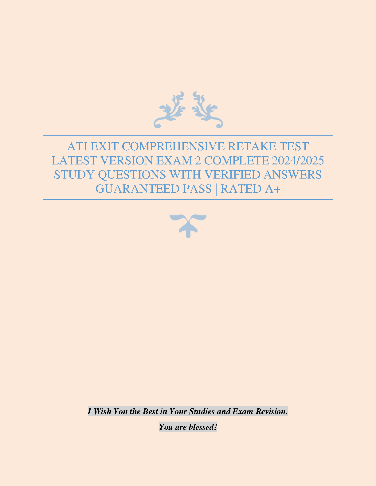 Ace your ATI Exit Exam with this comprehensive retake test! This 2024/2025 edition contains the latest study questions with verified answers, designed to guarantee a passing grade. Avoid resits and achieve an A+! Ideal for students aiming for exam success on their first try.