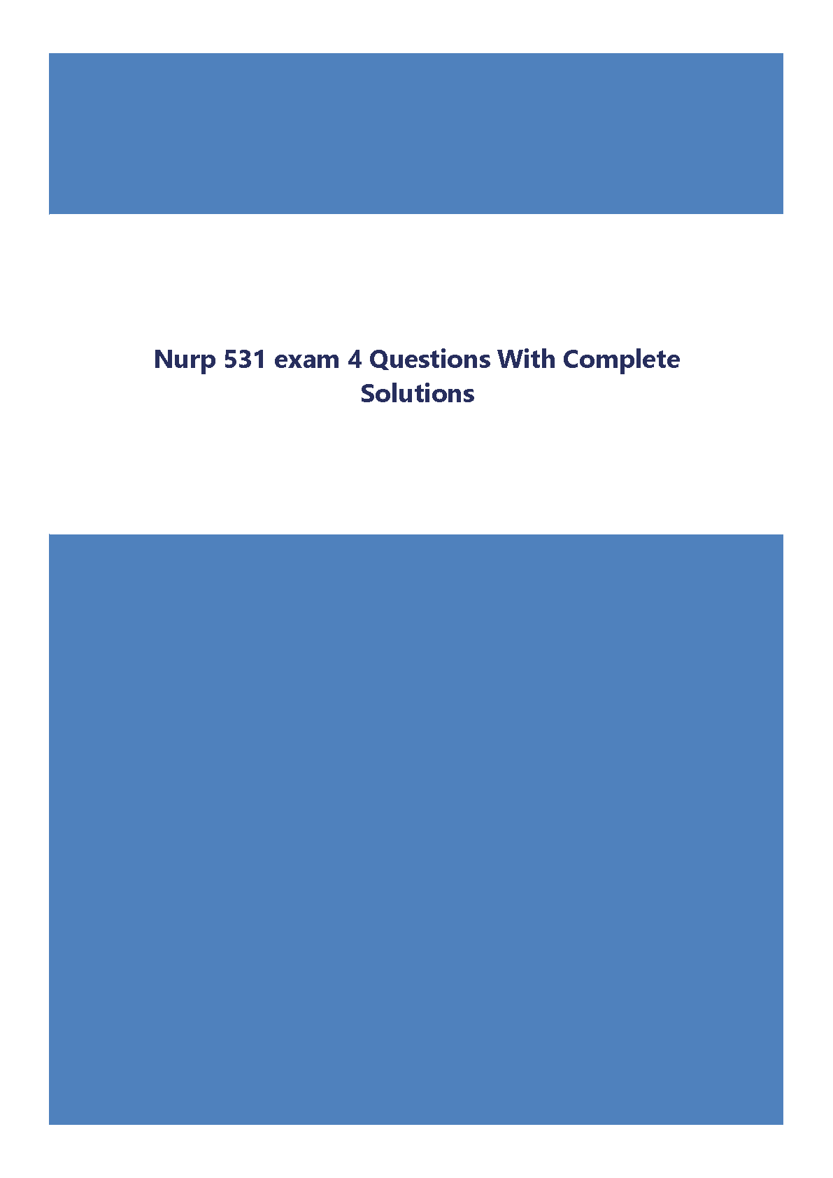 Ace your Nurp 531 Exam 4 with this comprehensive solution manual. This resource provides complete solutions to all exam 4 questions, designed to help students pass their exam on the first attempt and avoid resits. Perfect for 2024/2025 academic year.
