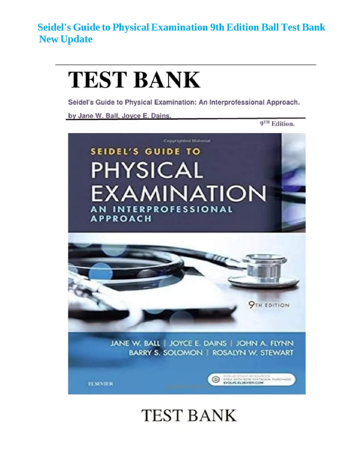 Seidel's Guide to Physical Examination 9th Edition Test Bank by Jane W. Ball, Joyce E. Dains, John A. Flynn, Barry S. Solomon, and Rosalyn W. Stewart