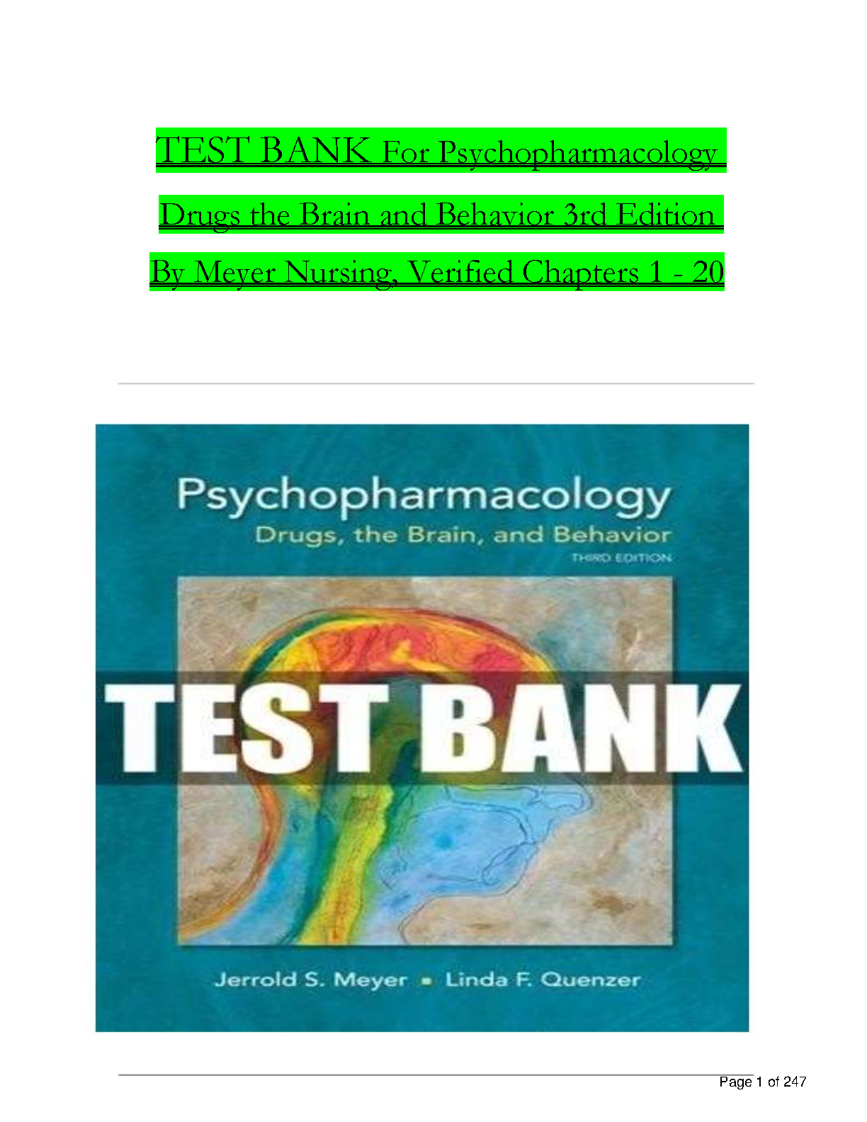 Ace your Psychopharmacology exams with this comprehensive test bank for Meyer and Quenzer's 3rd edition textbook. This resource includes verified questions cove...