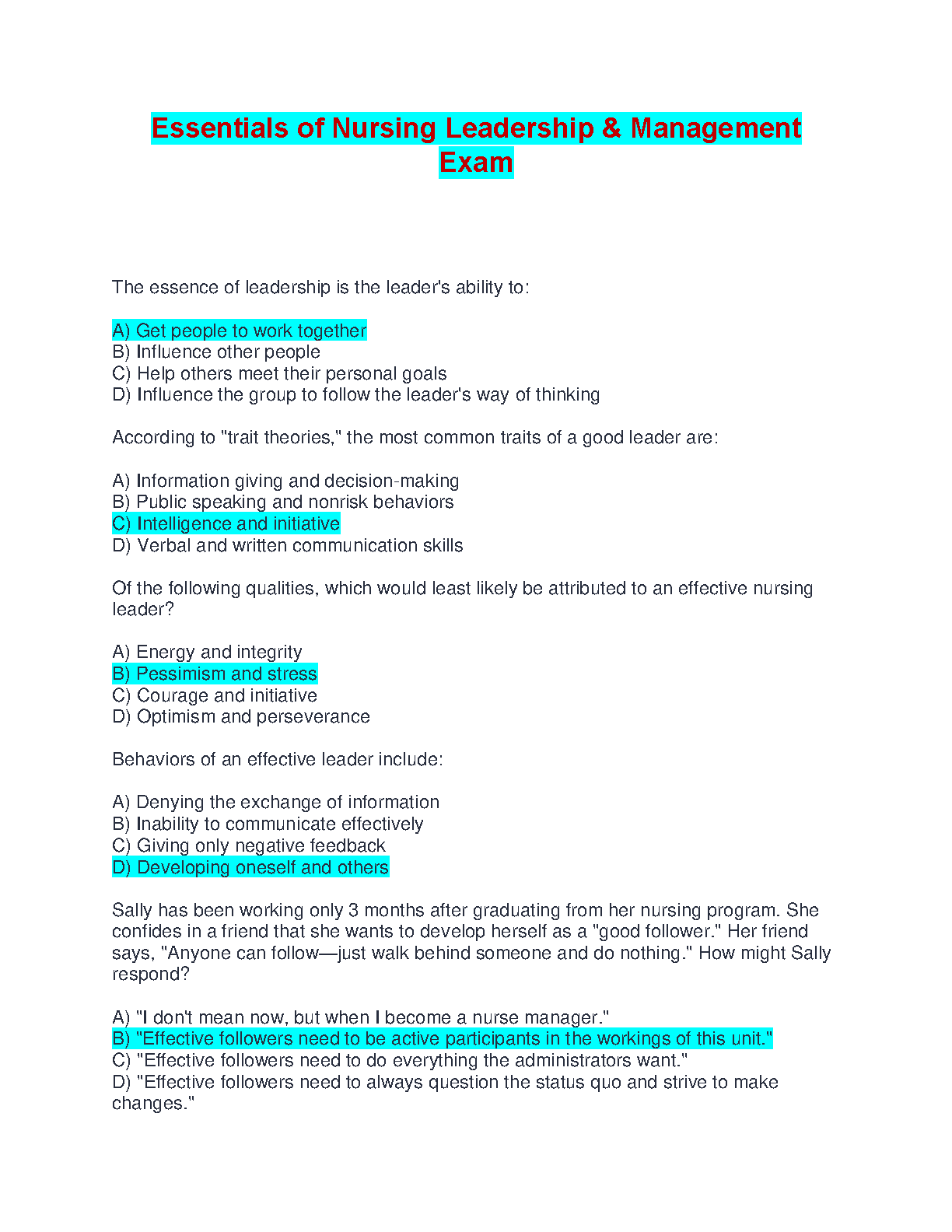 Ace your Essentials of Nursing Leadership & Management exam on your first try with this comprehensive guide designed for the 2024/2025 academic year. This resource helps you master key concepts and avoid resits. Learn about leadership styles, effective communication, and more.