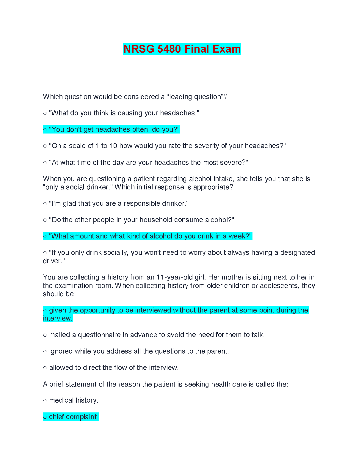 Pass your NRSG 5480 final exam with flying colors! This 2024-2025 study guide is meticulously crafted to help nursing students conquer their exams on the first attempt. Prepare for success with our comprehensive materials and avoid the stress of resits. This resource covers key concepts and questions to boost your confidence and exam performance. Start your journey to exam excellence today!