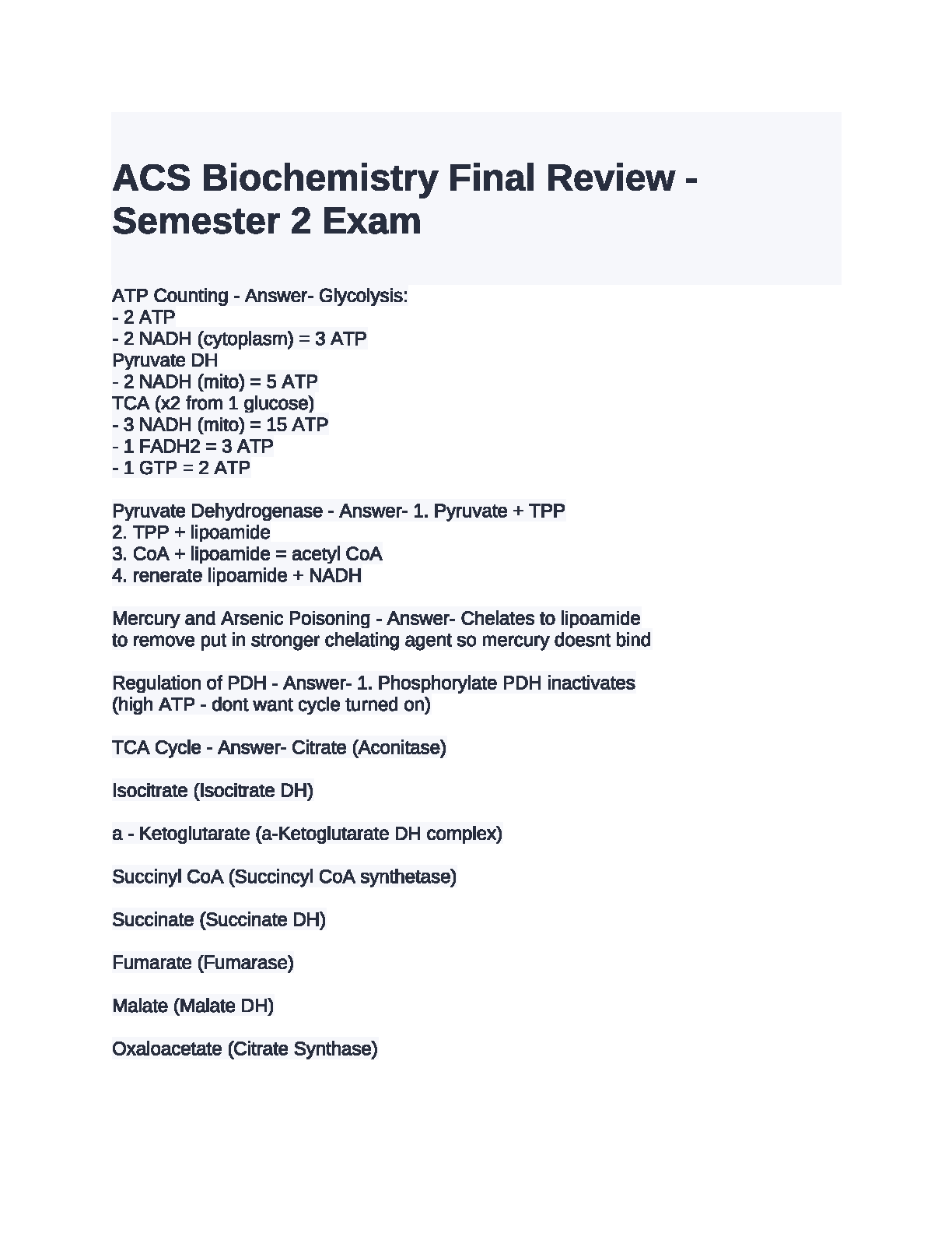 ACS Biochemistry Semester 2 Exam Final Review Guide 2024-2025: Ace Your Exam on the First Attempt