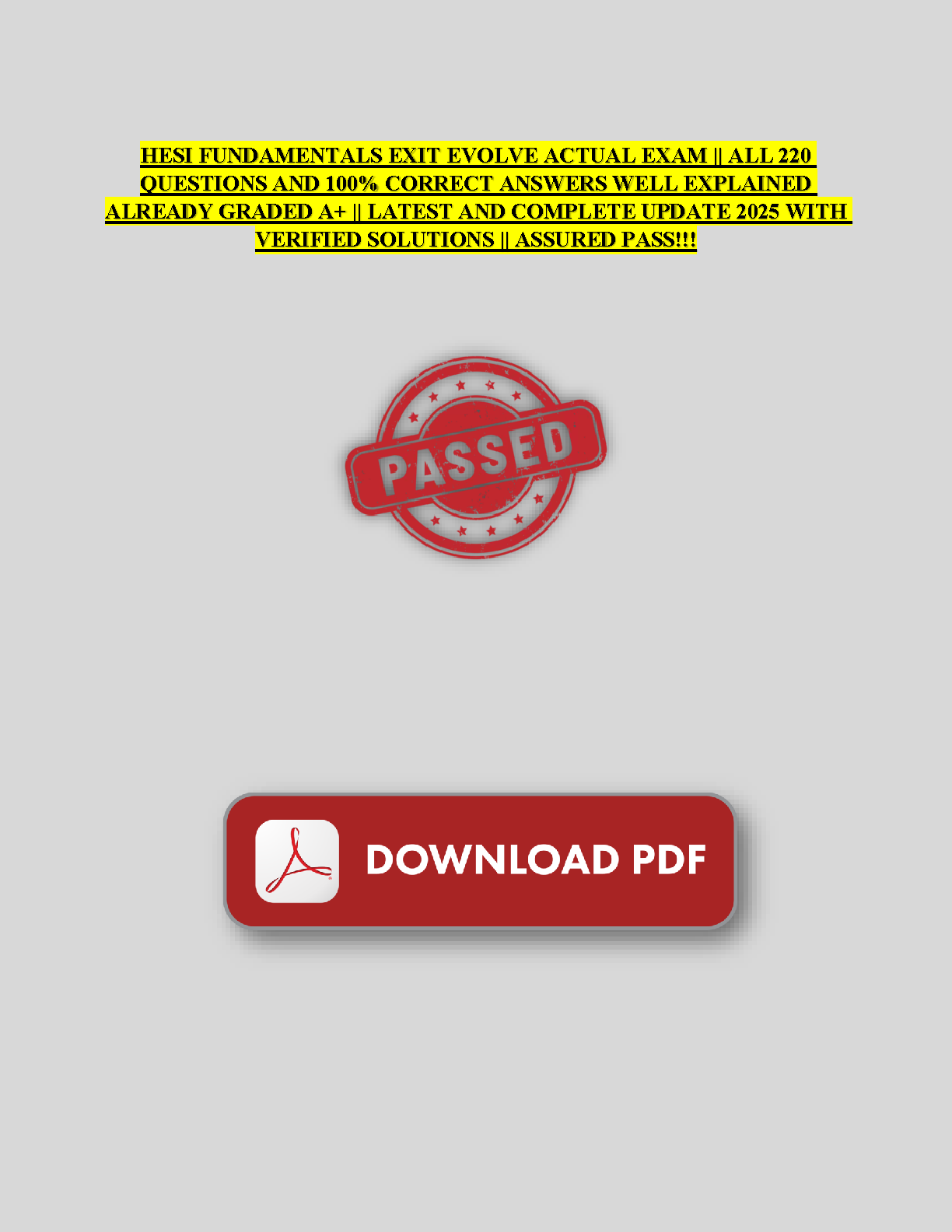 HESI Fundamentals Exit Evolve Actual Exam: 220 Questions & Answers (2025 Update) - Verified Solutions for Guaranteed Success