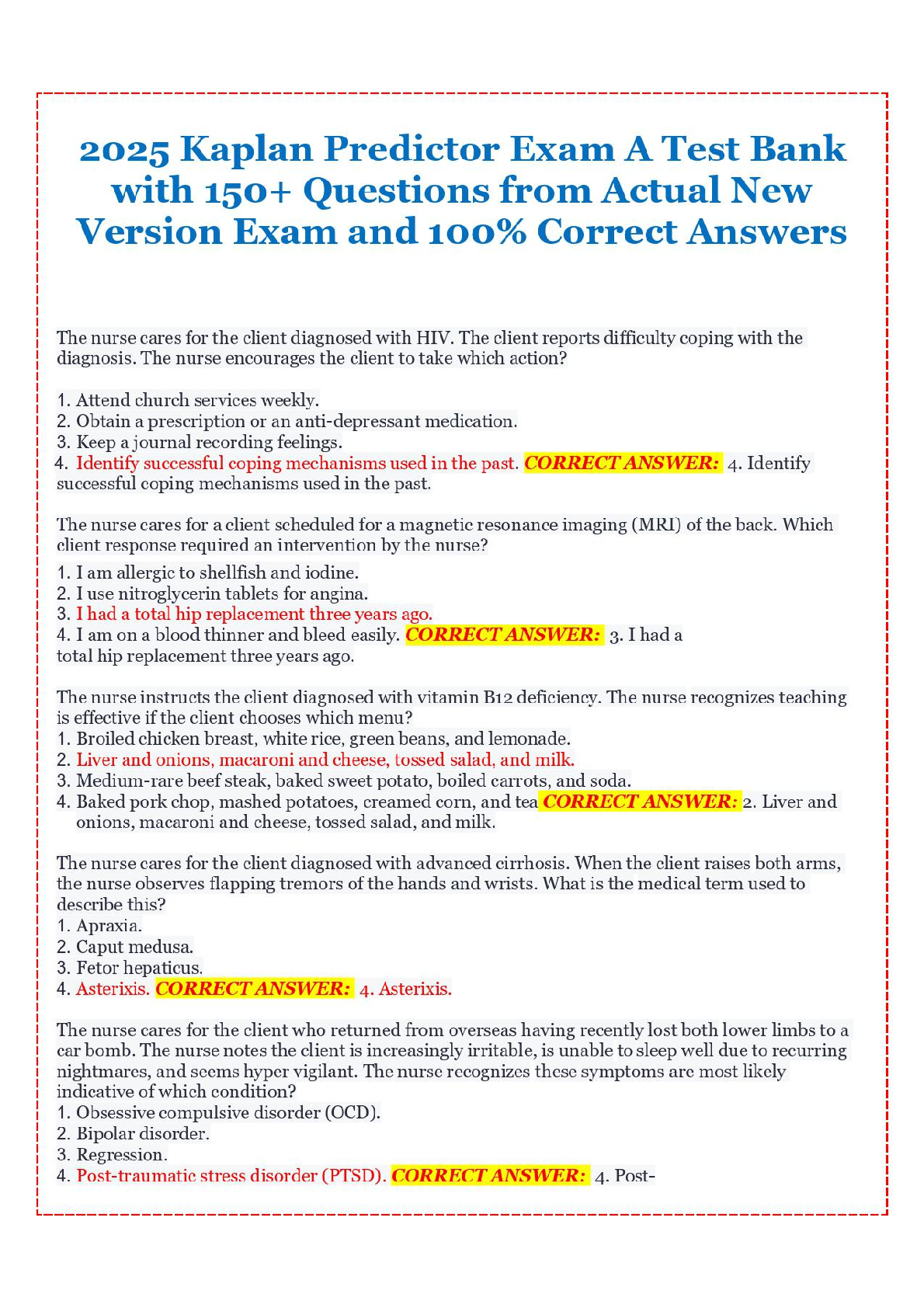 Ace your Kaplan Predictor exam with this comprehensive 2025 test bank. Featuring 150+ questions from actual new versions of the exam and 100% verified answers, this resource guarantees first-attempt exam success and helps you avoid costly resits. Prepare effectively and confidently for your upcoming exams.