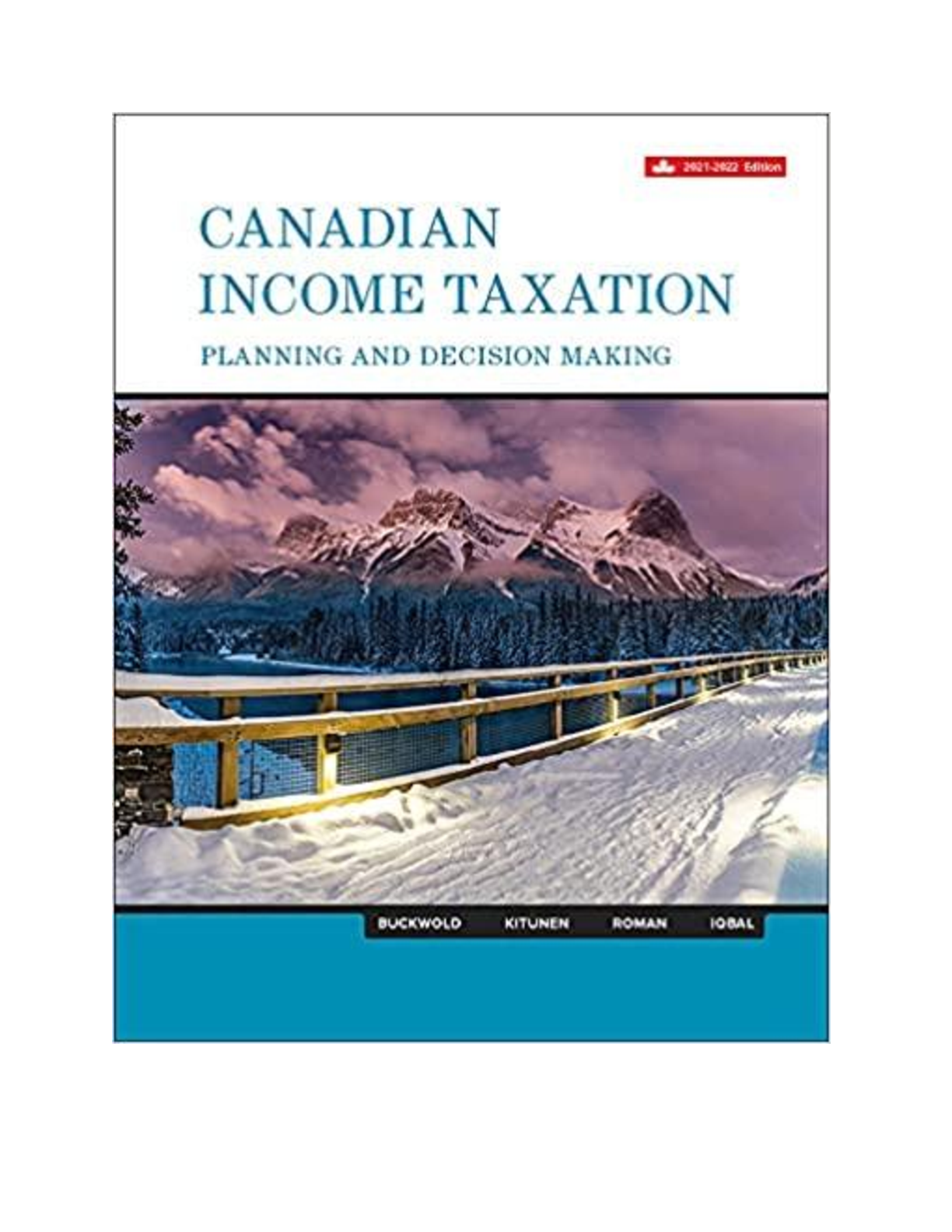 Canadian Income Taxation: Planning and Decision Making, 2021-2022 Edition by Buckwold, Kitunen, Roman, and Iqbal