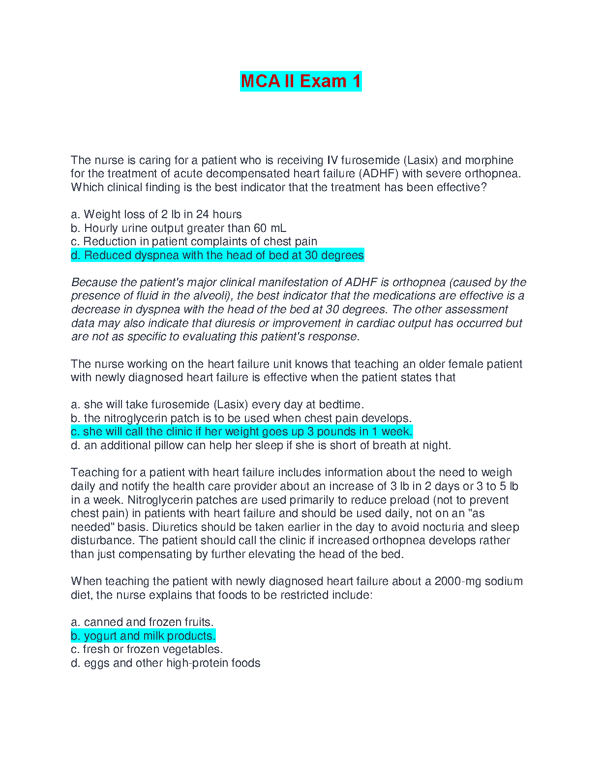 MCA II Exam 1: A Comprehensive Review for Success in Heart Failure Nursing