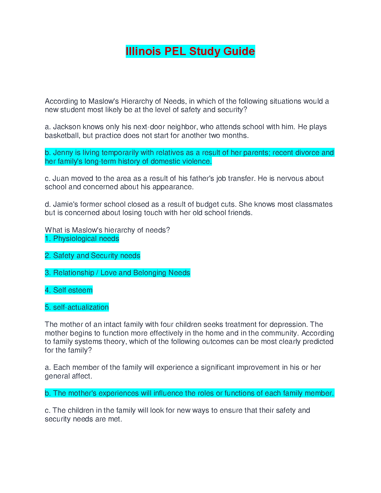 Ace your Illinois PEL exam on the first try with this comprehensive study guide covering Maslow's Hierarchy of Needs and Family Systems Theory. This updated 202...