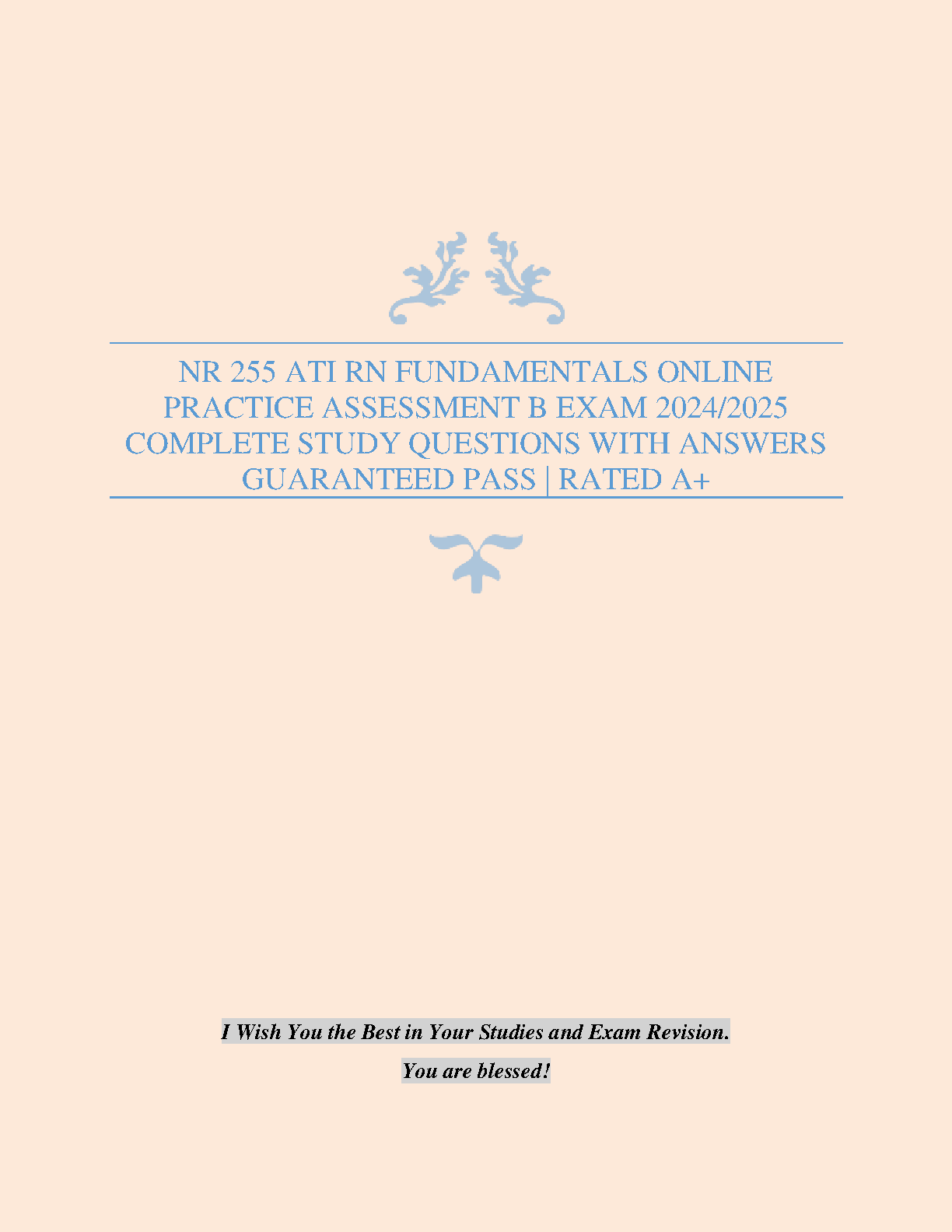 Ace your NR 255 ATI RN Fundamentals Online Practice Assessment B exam with this comprehensive study guide. This resource provides complete study questions and answers, designed to help you achieve a guaranteed pass and an A+ grade on your first attempt. Avoid resits and master the material with this essential exam prep resource for the 2024/2025 academic year.
