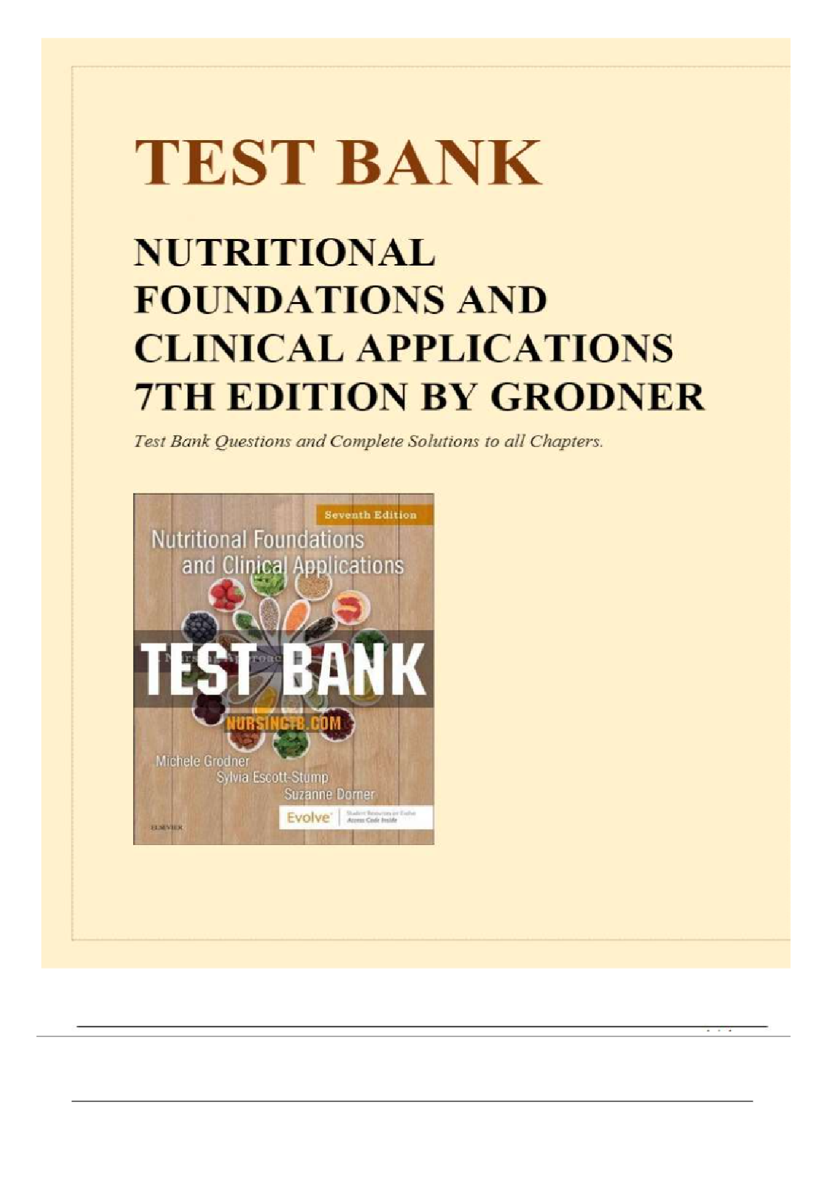 Ace your nutrition exams with this comprehensive test bank for Grodner, Escott-Stump, and Dorner's Nutritional Foundations and Clinical Applications, 7th editio...