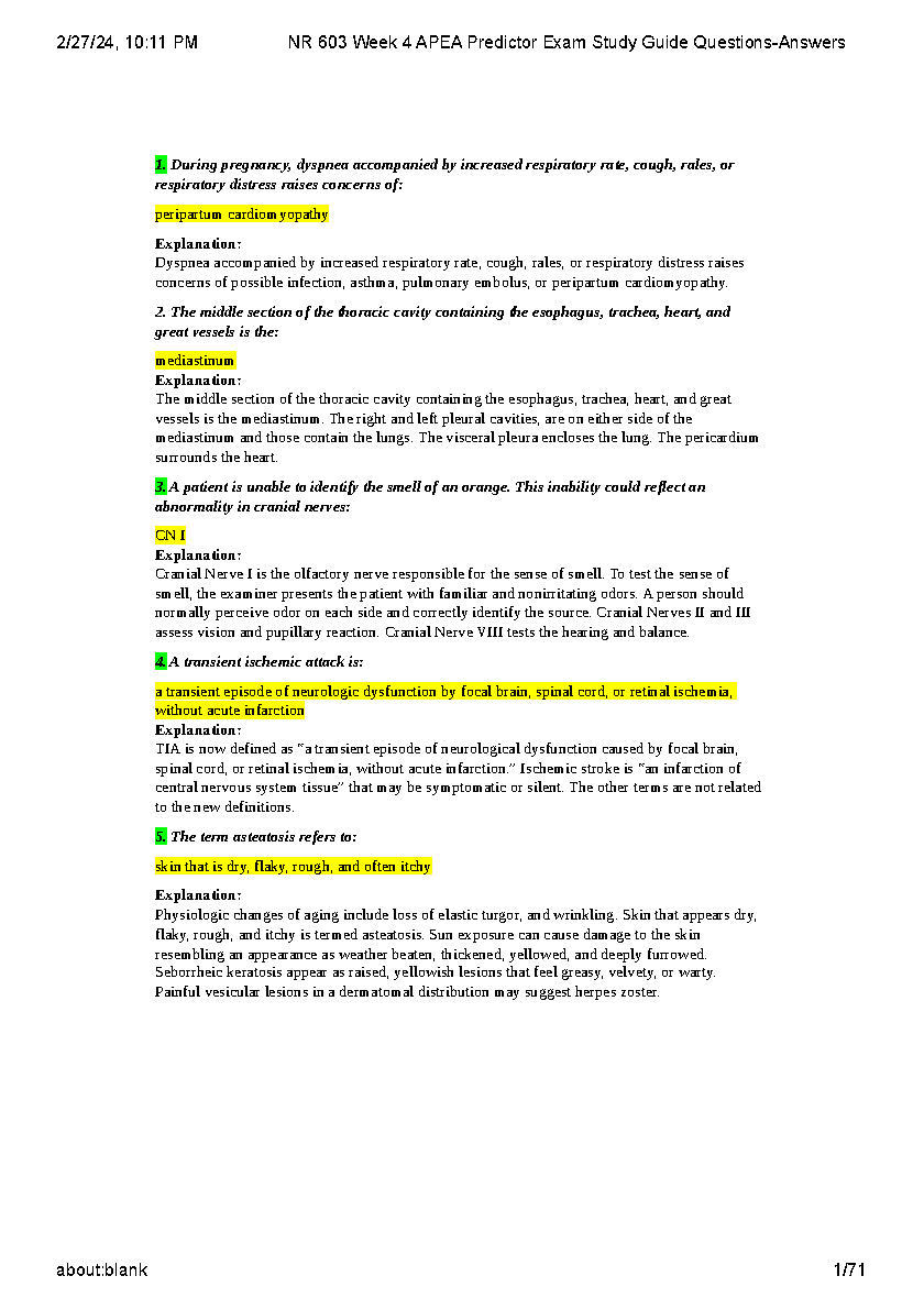 APEA Predictor Exam Study Guide Questions and Answers: NR 603 Week 4 - 2024/2025 Edition