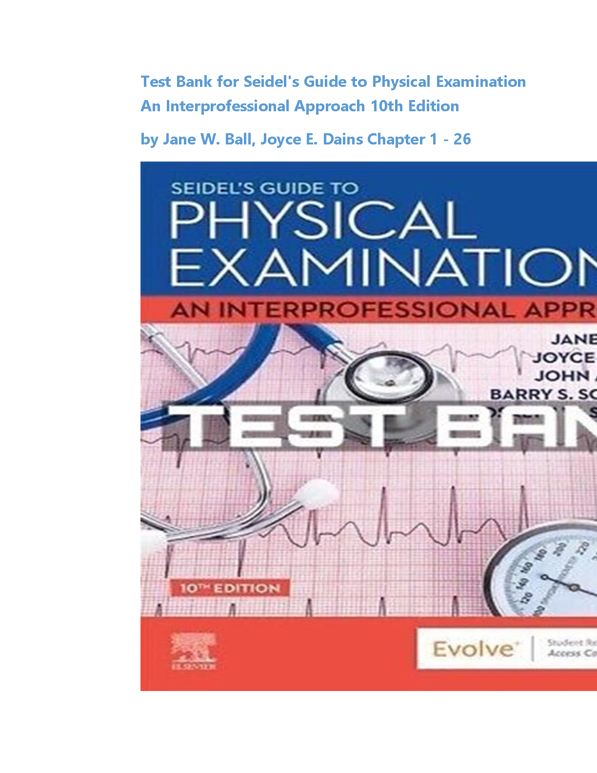 Seidel's Guide to Physical Examination, 10th Edition Test Bank by Jane W. Ball, Joyce E. Dains, John E. Benedict, and Barry S. Solomon