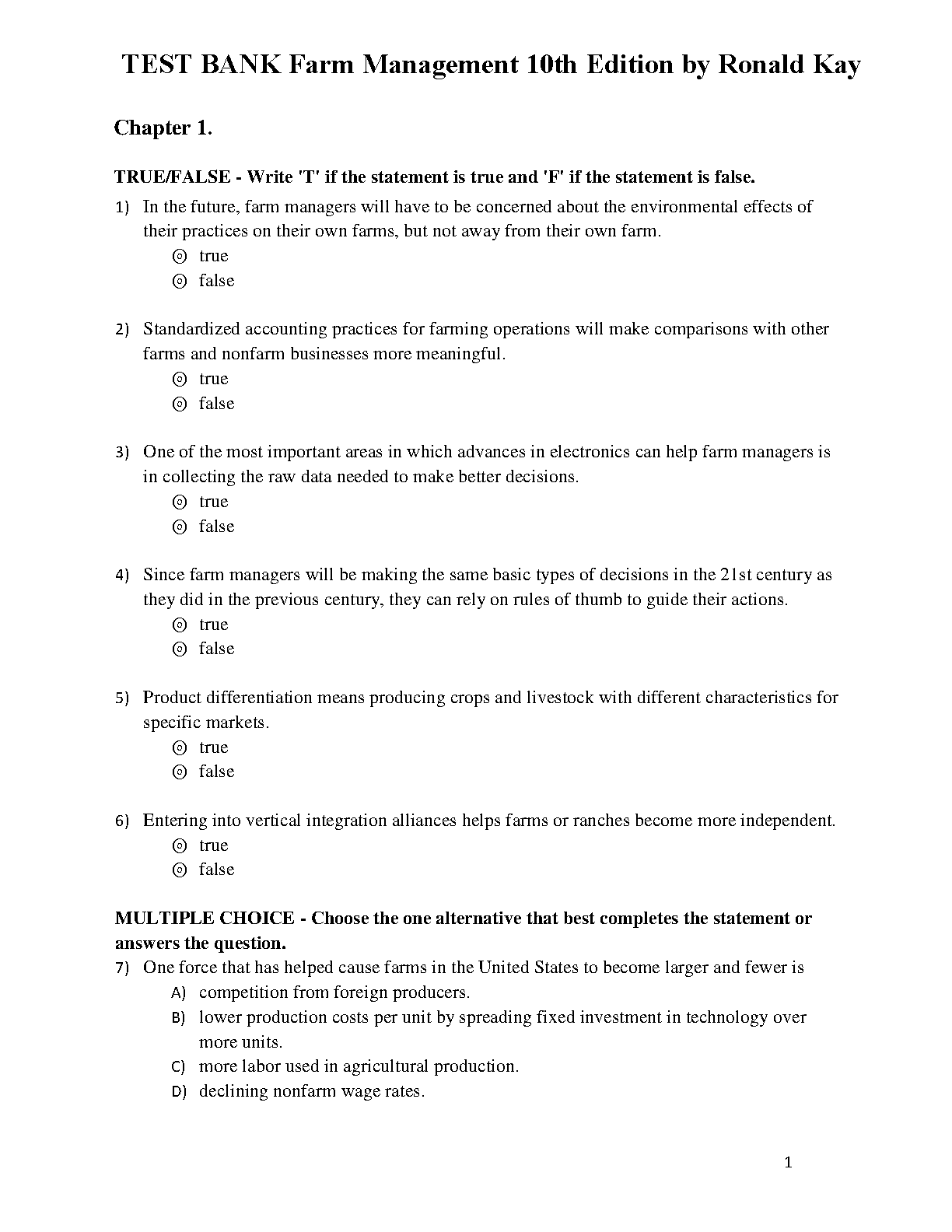 Farm Management 10th Edition Test Bank by Ronald Kay