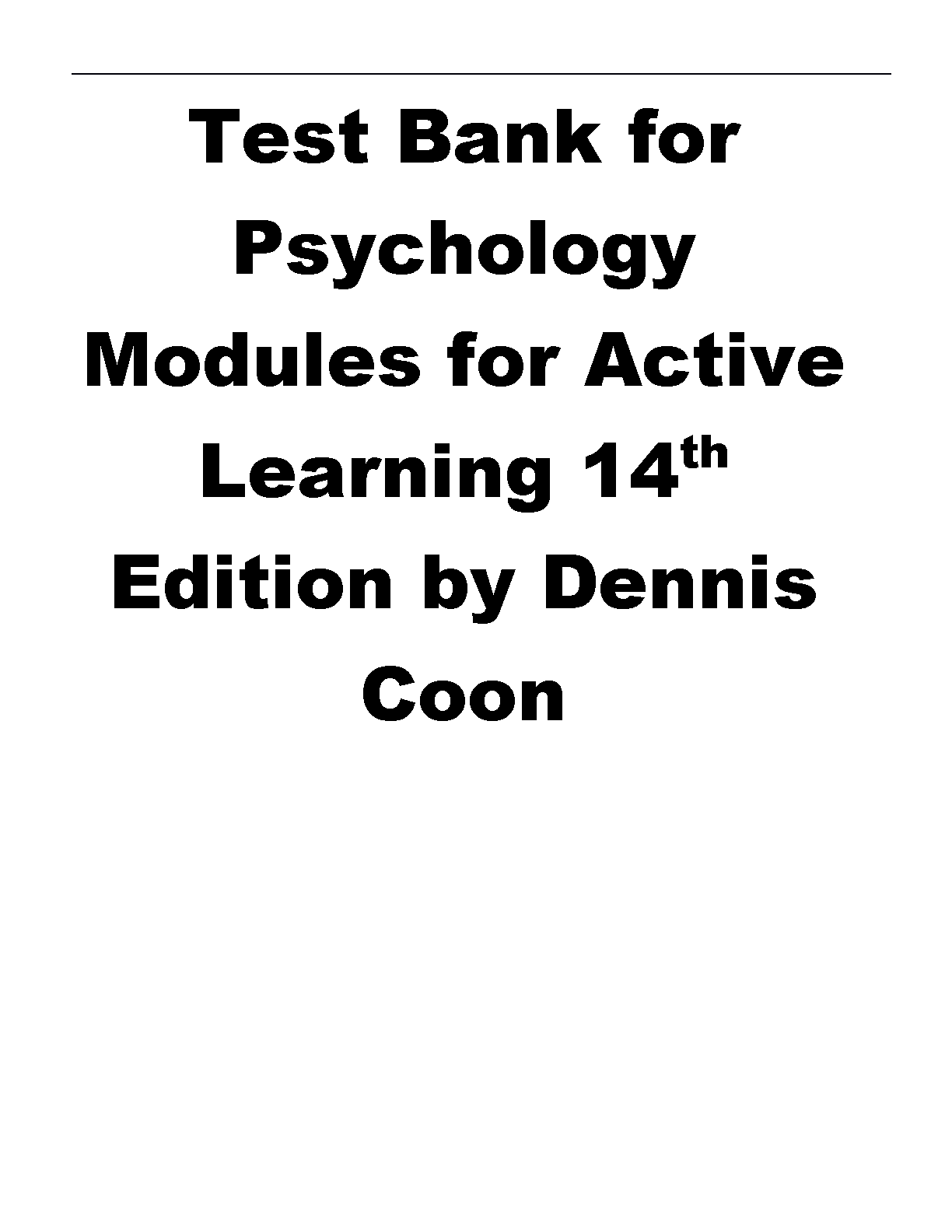 Test Bank for Psychology Modules for Active Learning, 14th Edition by Dennis Coon & John Mitterer