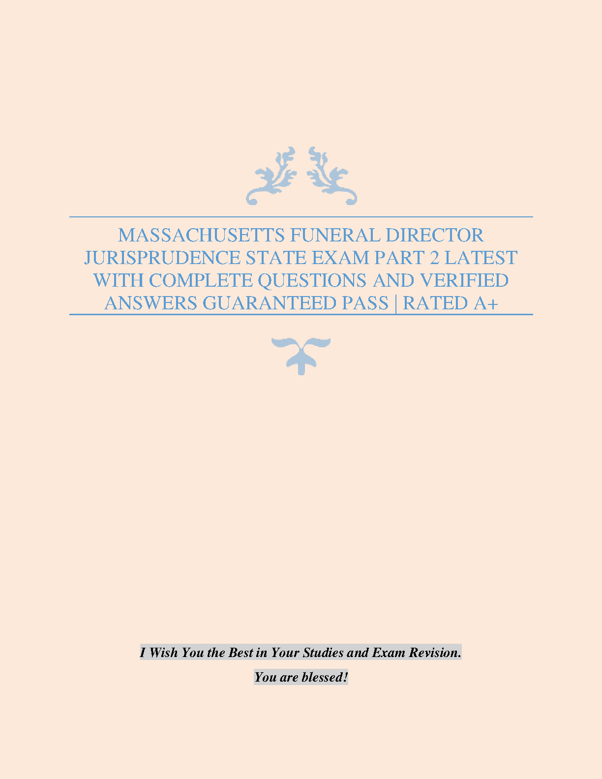 Massachusetts Funeral Director Jurisprudence State Exam Part 2: Latest Edition - Complete Questions and Verified Answers for Guaranteed Pass