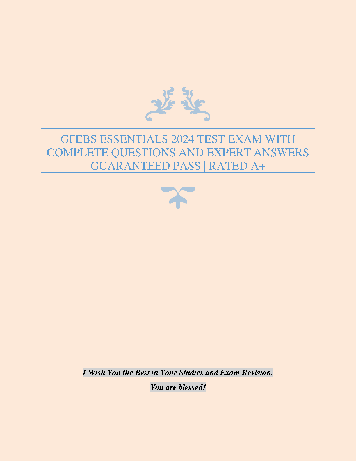 Ace your GFEBS Essentials exam with this comprehensive 2024 test bank featuring complete questions and expert answers. Designed to help students achieve a guaranteed pass and avoid resits. Rated A+!