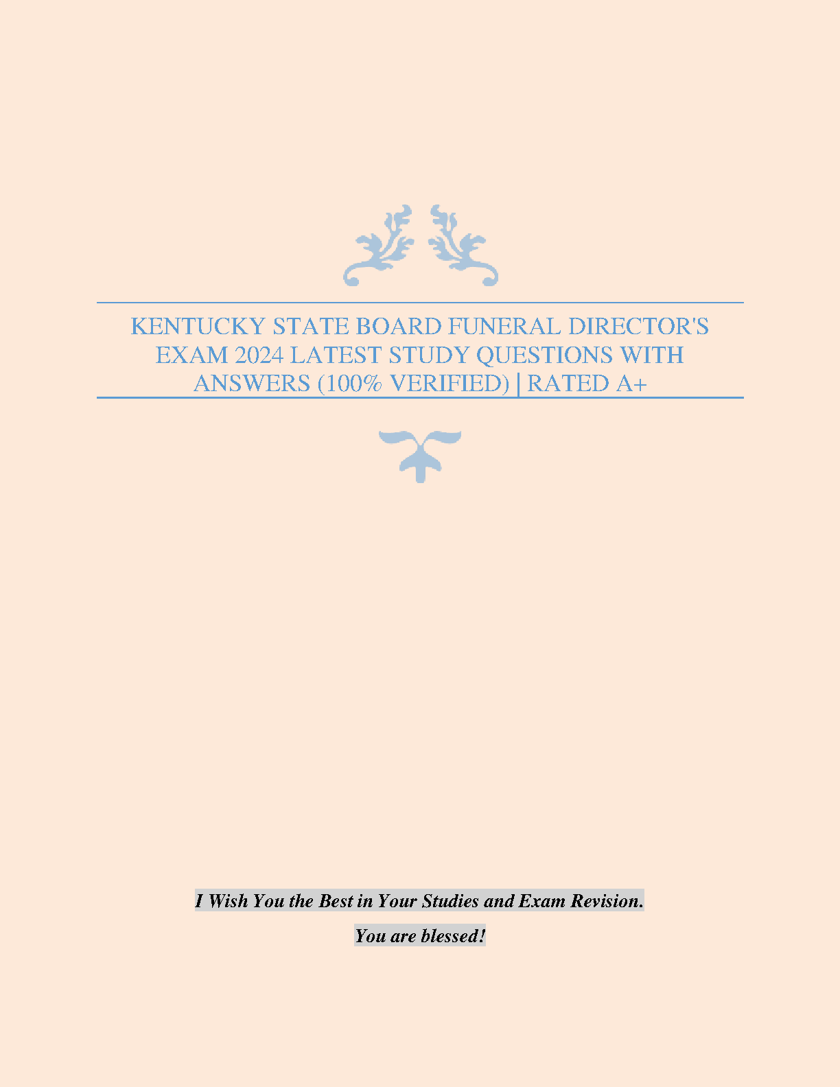 Ace the Kentucky State Board Funeral Director's Exam on your first try with this comprehensive 2024 study guide. These verified questions and answers are rated A+ and provide the best preparation for exam success. Guaranteed to help you avoid resits and boost your confidence.