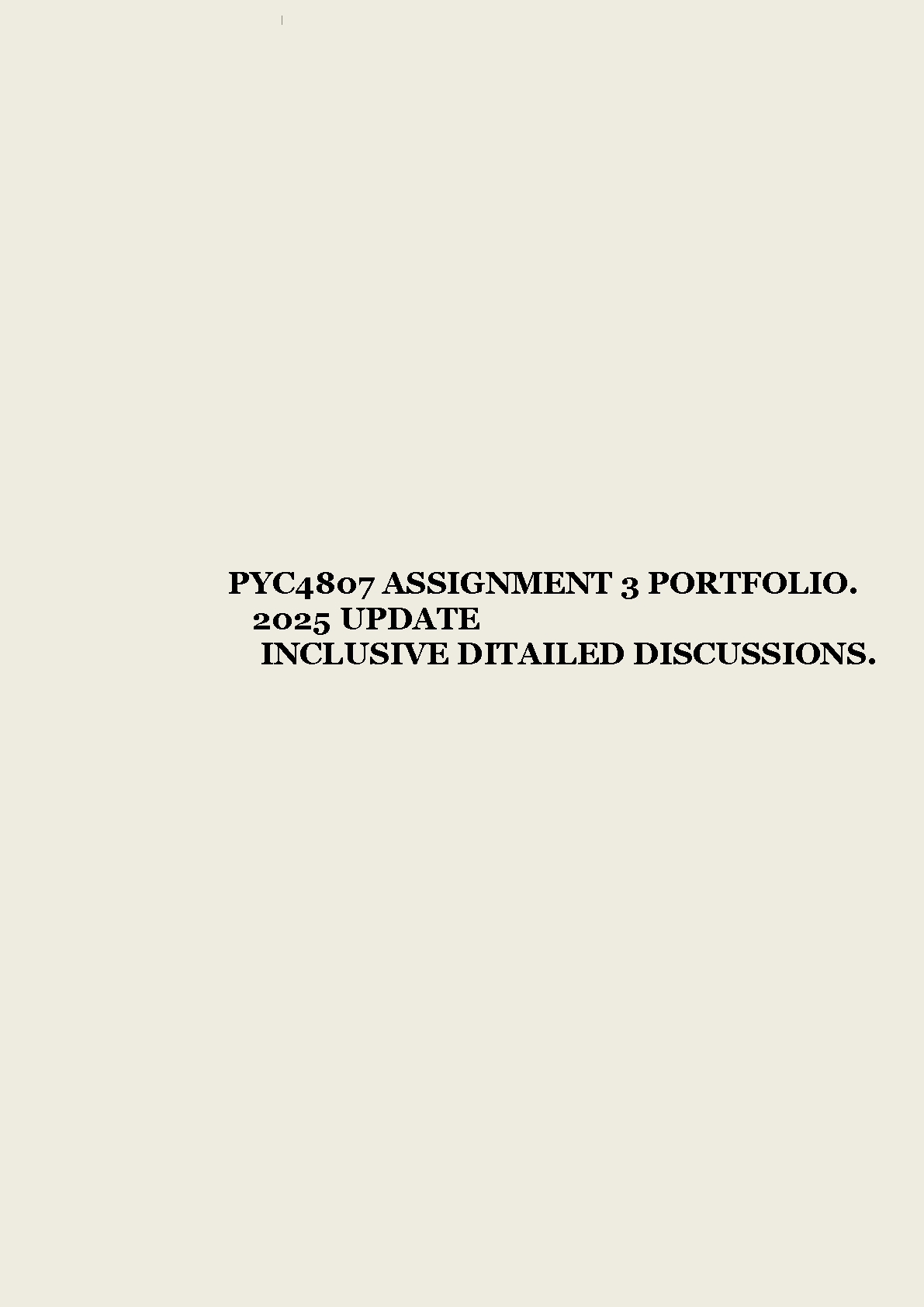 Ace your PYC4807 course with this comprehensive 2025 updated portfolio for Assignment 3. This resource provides detailed, inclusive discussions to help you unde...