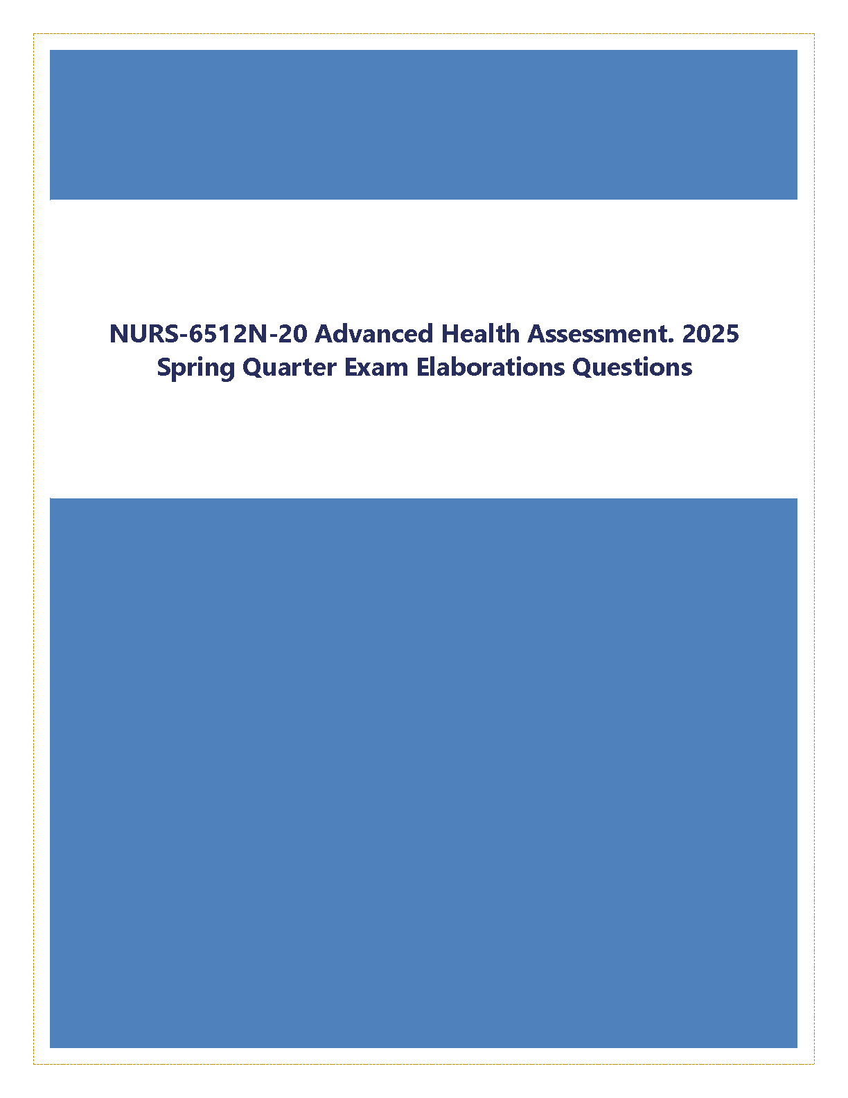 Conquer your NURS-6512N-20 Advanced Health Assessment exams with this comprehensive guide to Spring Quarter exam elaborations questions for the 2025 academic year. Prepare effectively, understand key concepts, and avoid resits. Designed to help students pass their exams on the first attempt.