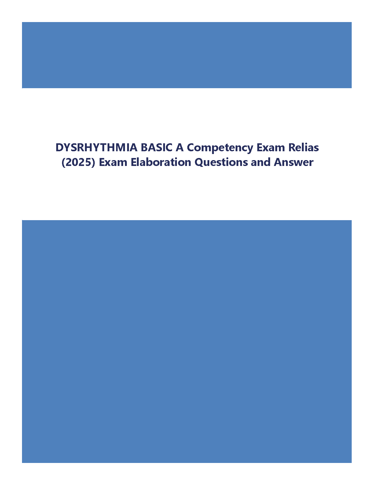 Ace your Relias Dysrhythmia Basic A Competency Exam with this comprehensive guide! This resource contains exam elaboration questions and answers for the 2025 ed...