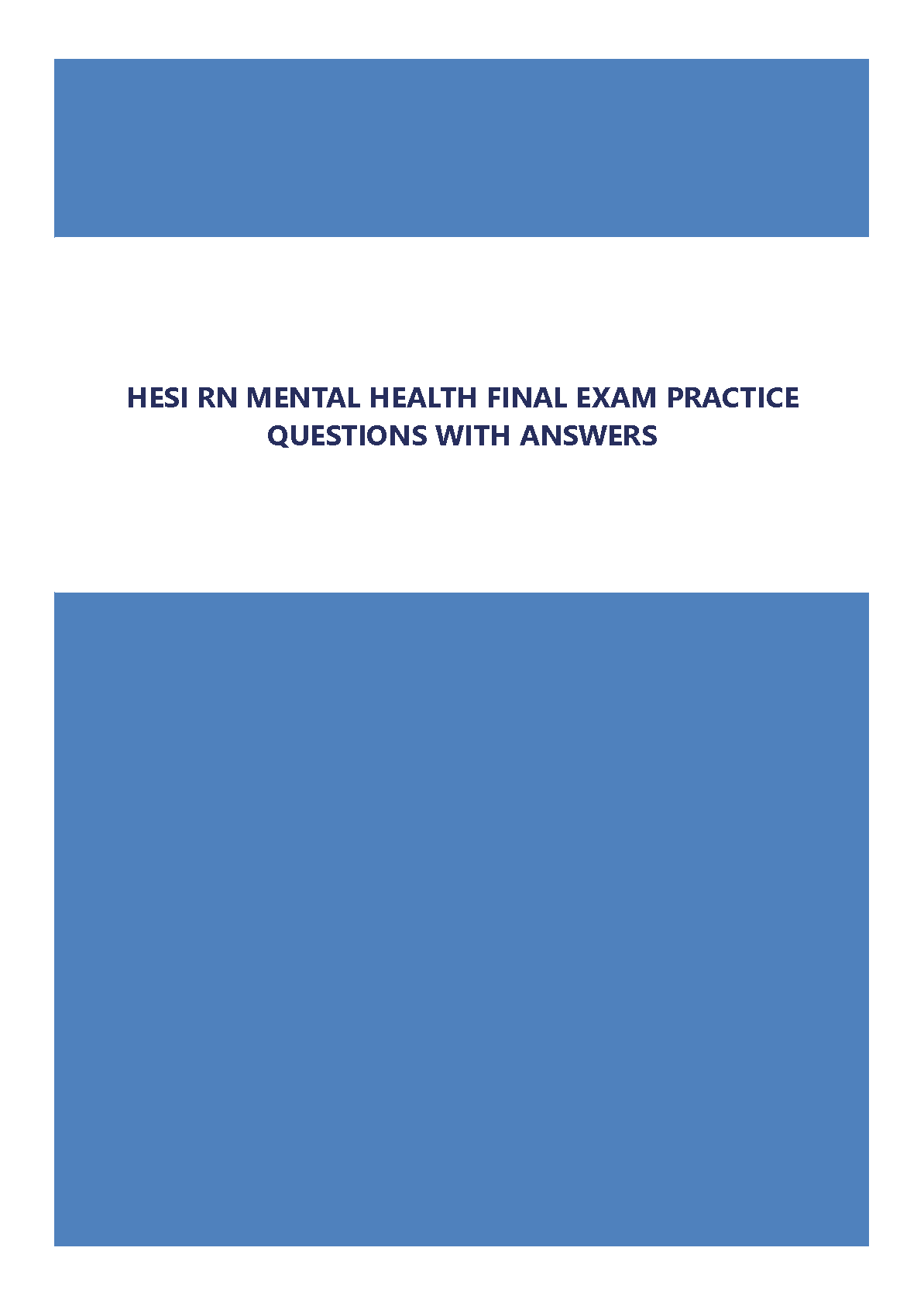 This comprehensive study guide provides HESI RN Mental Health final exam practice questions with answers. Designed to help nursing students achieve exam success...